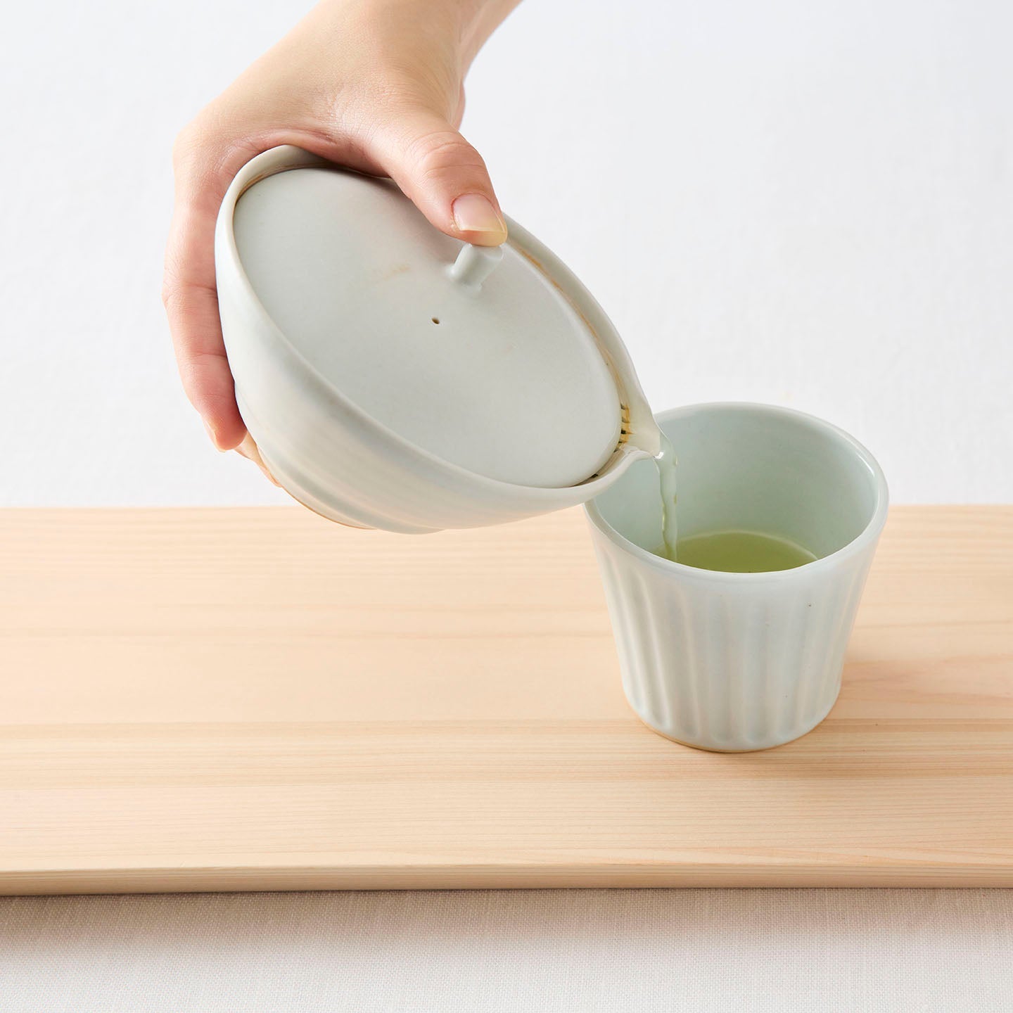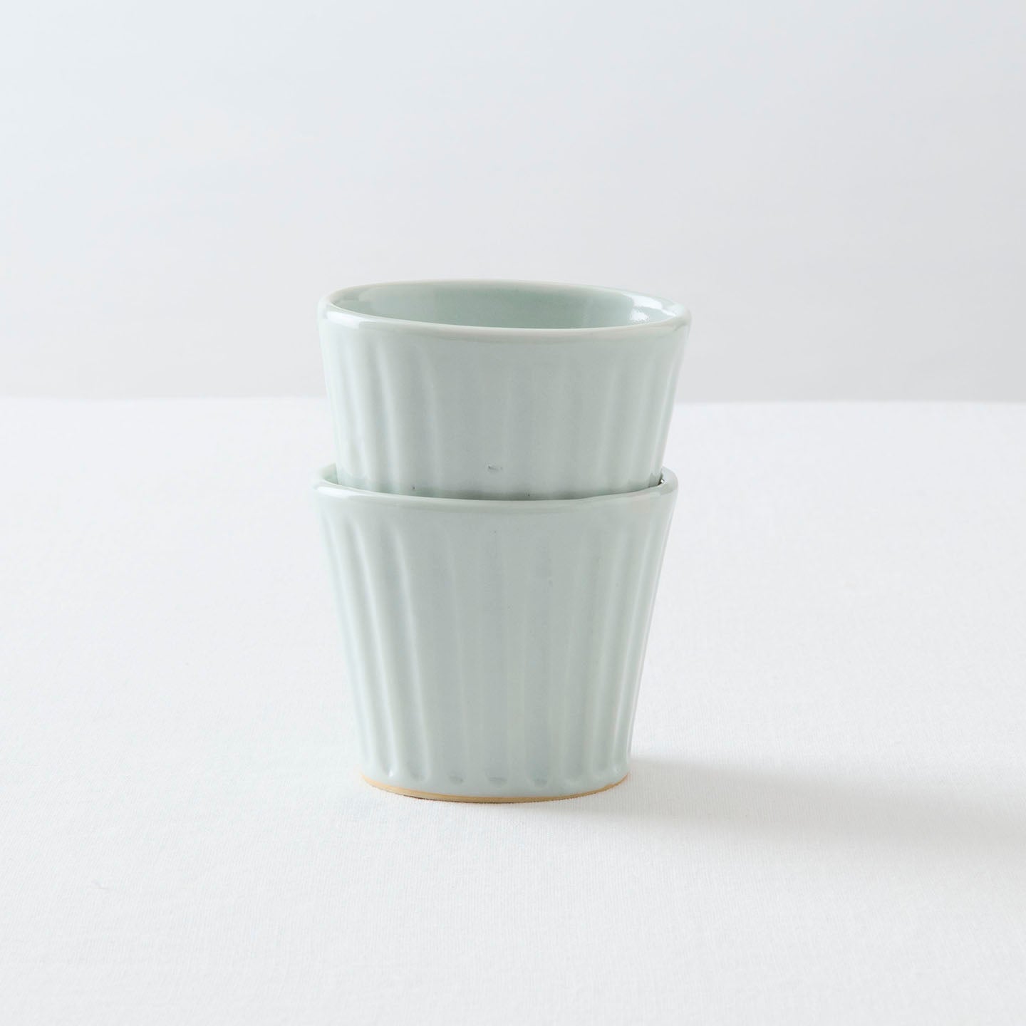 このたび、煎茶堂東京ではおふたりの作品の取り扱いが始まります。今回は、土井さんの「乳白釉シノギ猪口」ご紹介します。