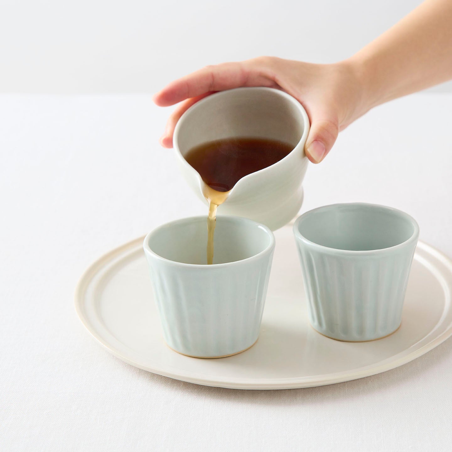 日々を彩る。土井さんの「乳白釉シノギ猪口」