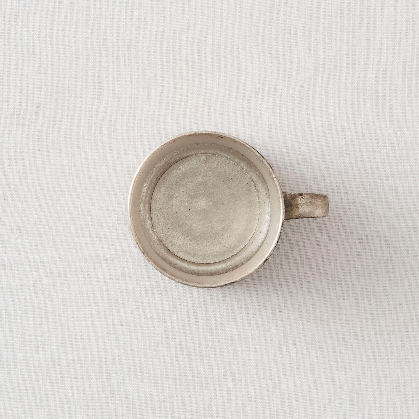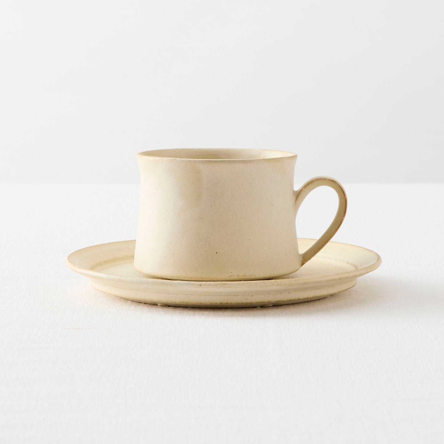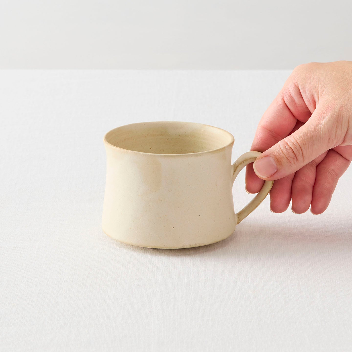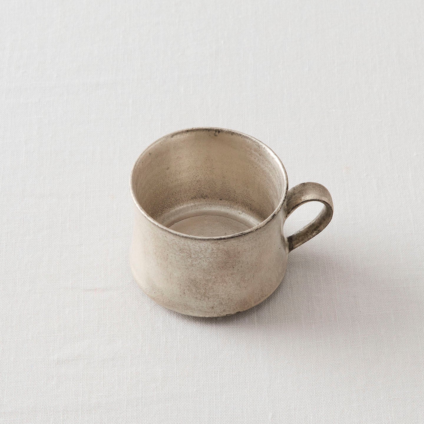 底に向かって広がりを見せる、落ち着いた佇まいの「コーヒーカップ」。取っ手も胴中から下方に配置されており、揺るぎない安定感にほっと心がなごみます。