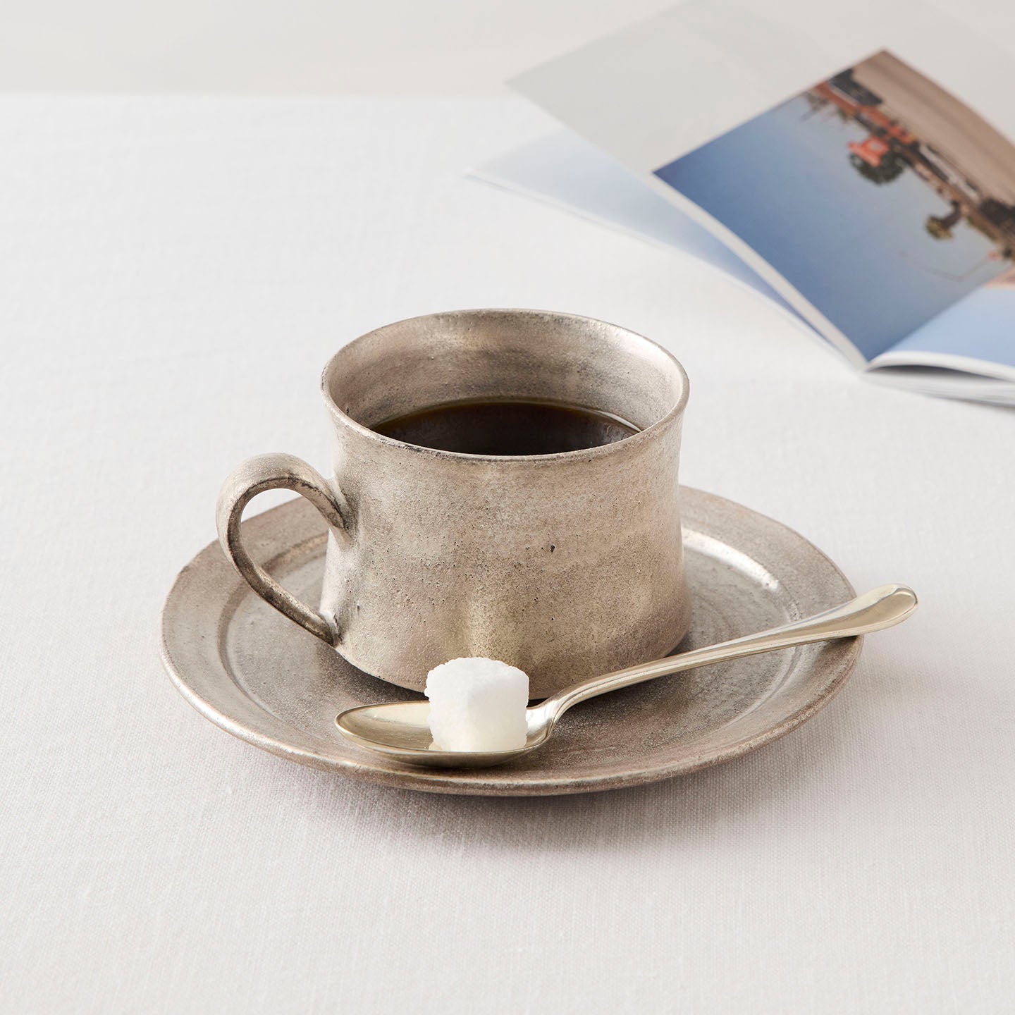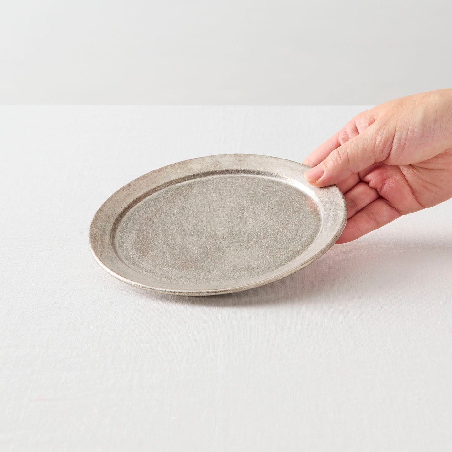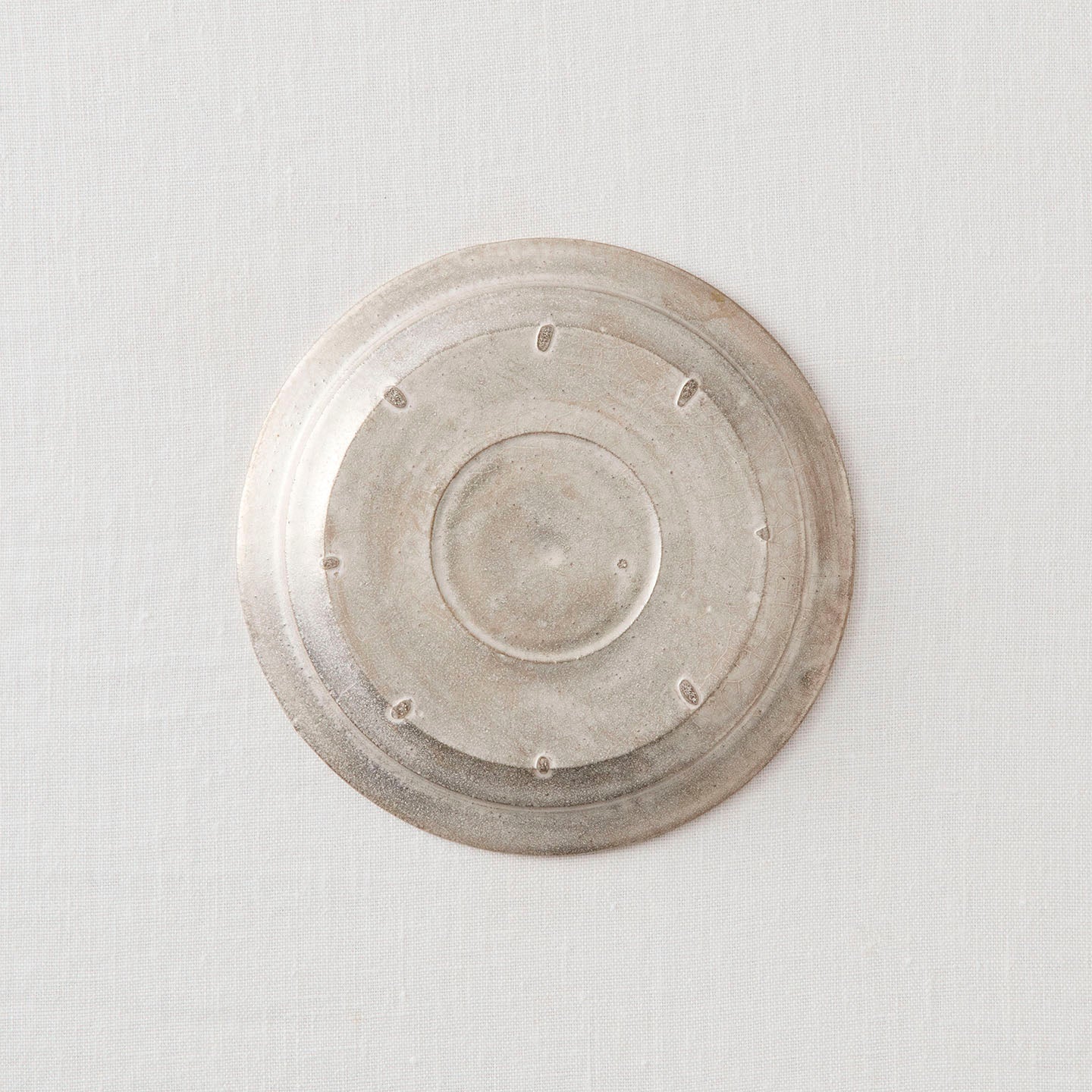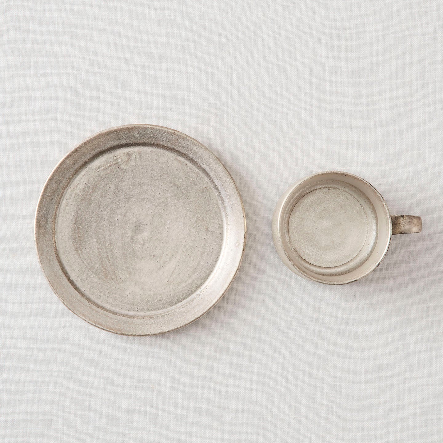 「総銀彩」は、白っぽさのある銀色が鈍く輝きを放ちます。メタリックの冷たさと、陶器ならではのぬくもりを併せ持つ、唯一無二の質感です。
