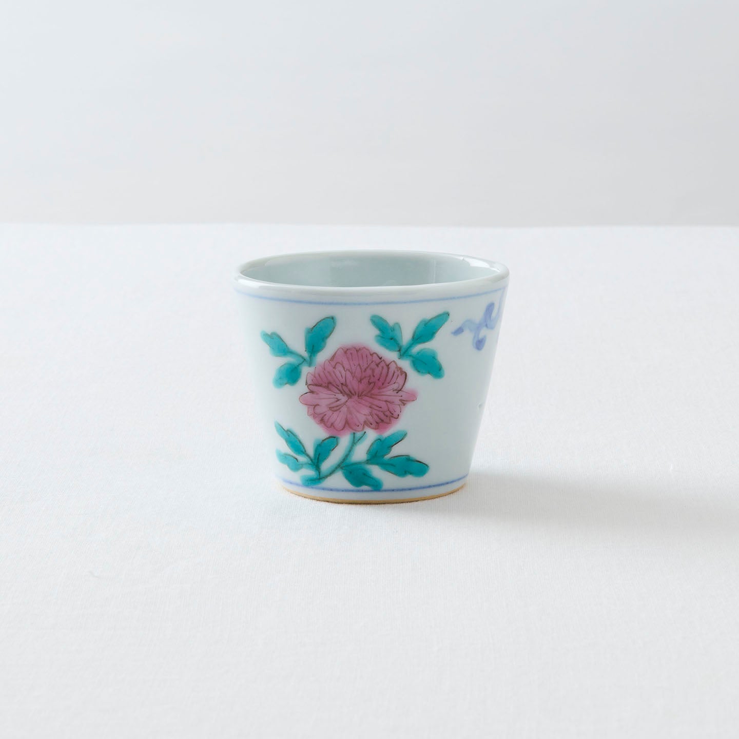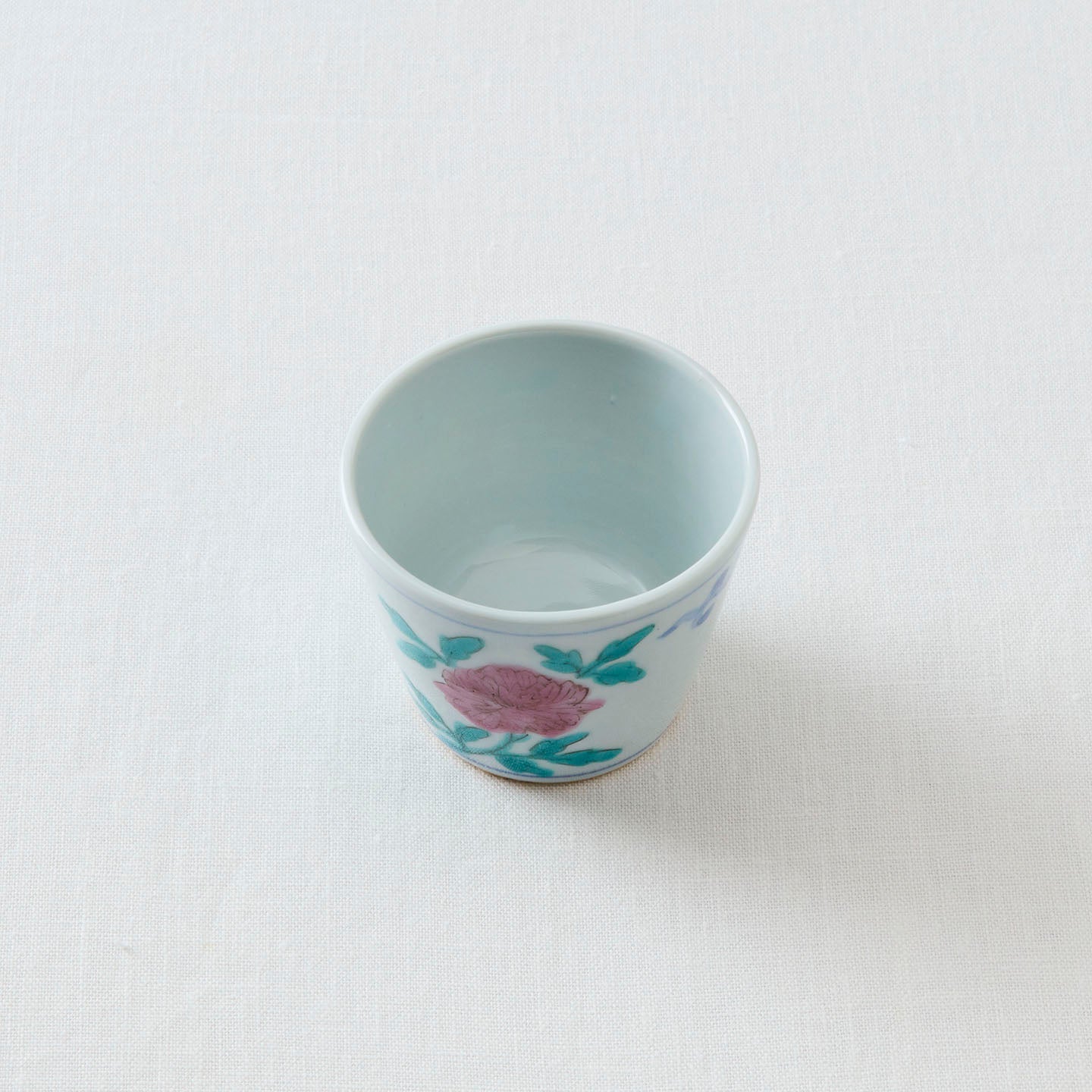 このたび、煎茶堂東京ではおふたりの作品の取り扱いが始まります。今回は、清水さんの「文蕎麦猪口牡丹」をご紹介します。