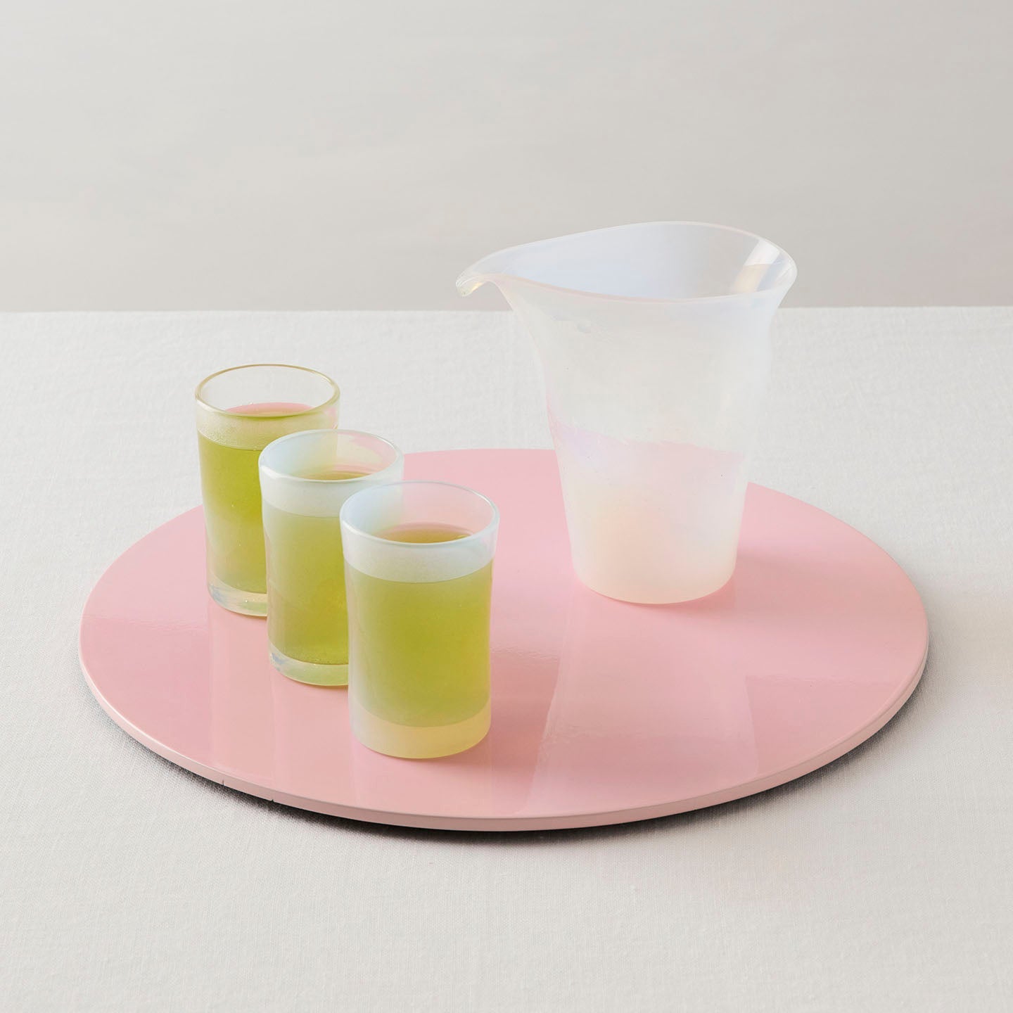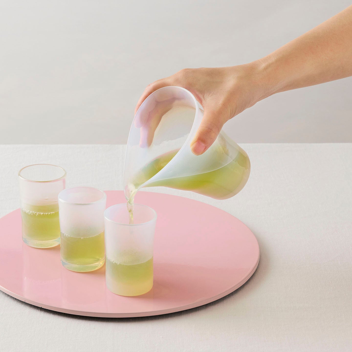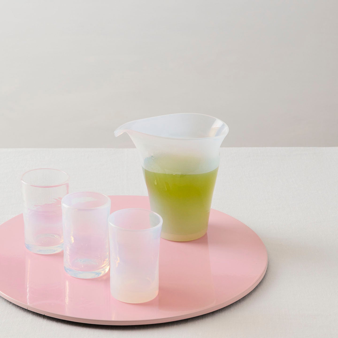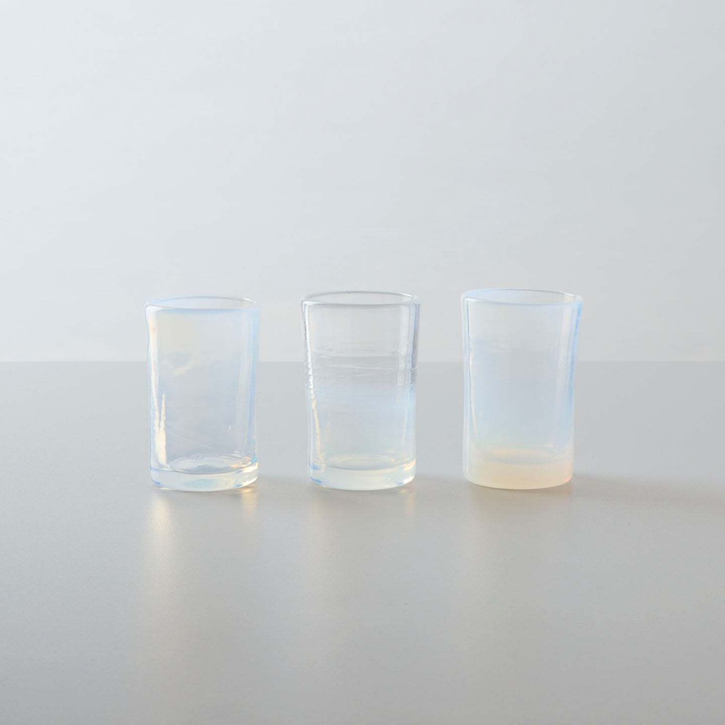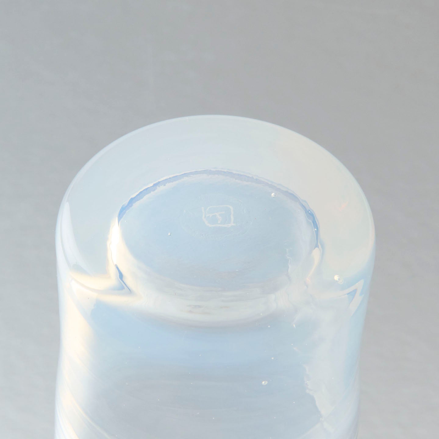 乳白色のガラスは、光の加減によってほんのりとピンクやイエロー、ブルーが浮かび上がり、まるで貝殻の内側のような、不思議な表情を見せてくれます。
