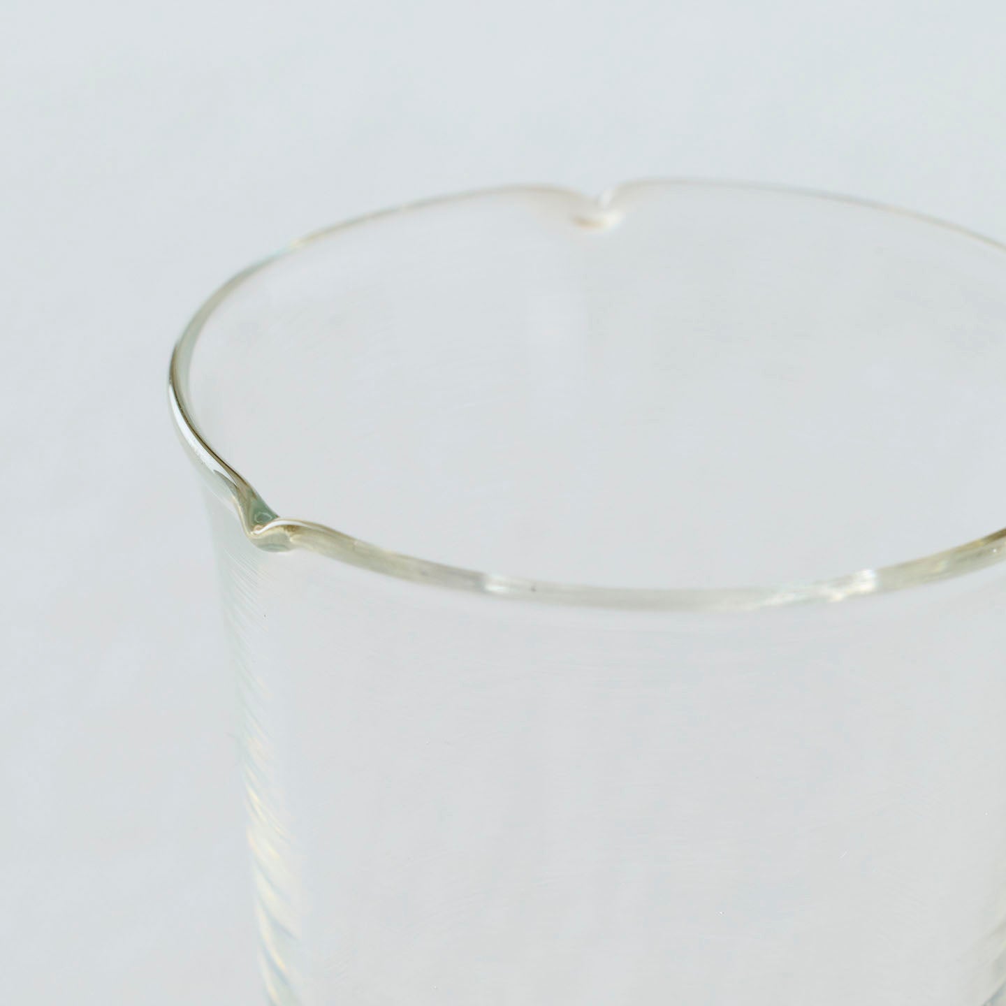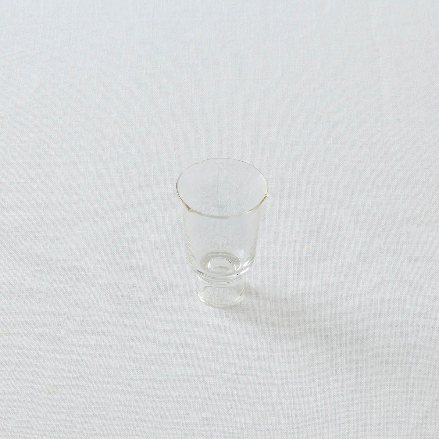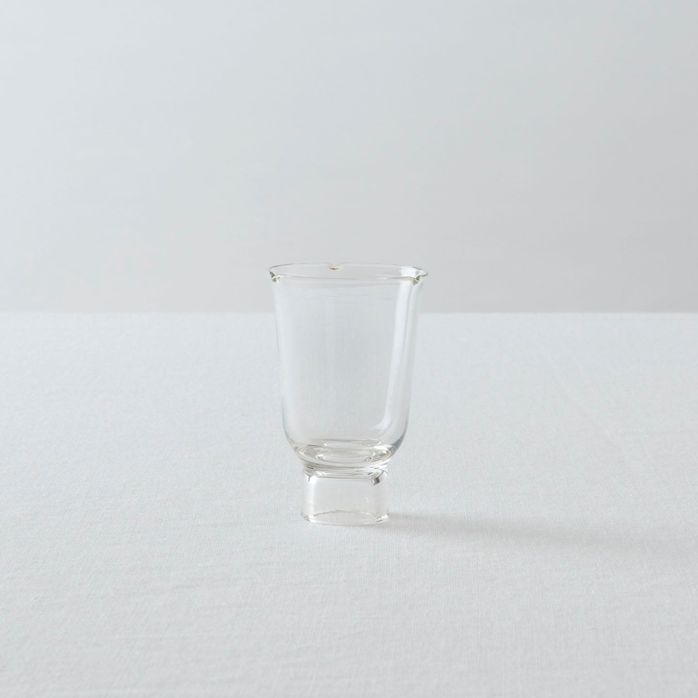 容量はおよそ30ml。小ぶりながら、細やかな造形に目を奪われるグラス。口元に施された三箇所の凹みが、上から見たとき花のような紋様を描きます。