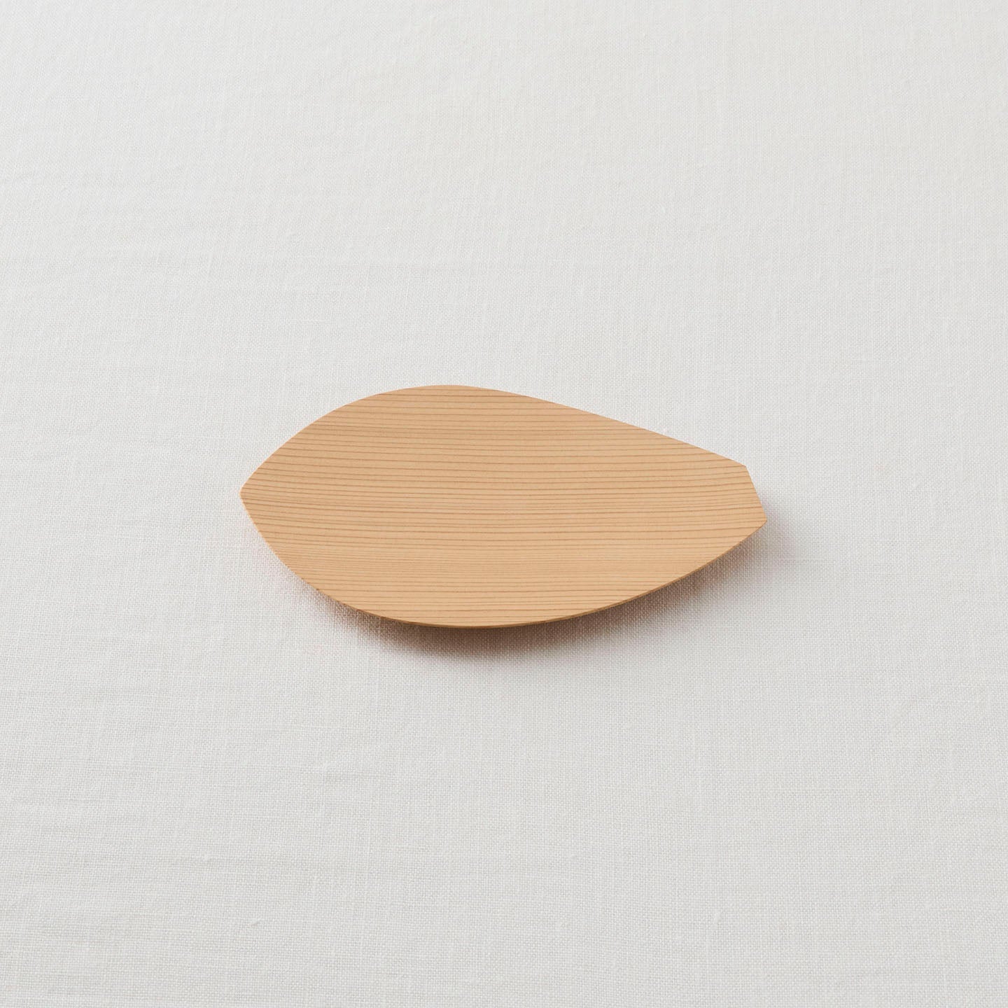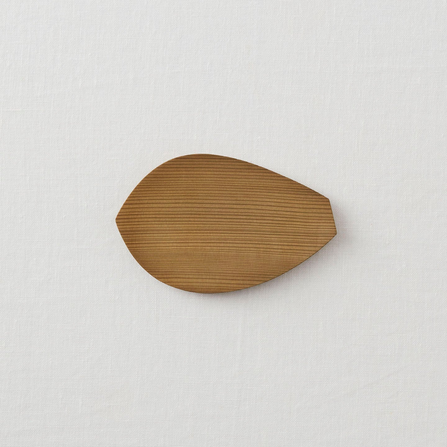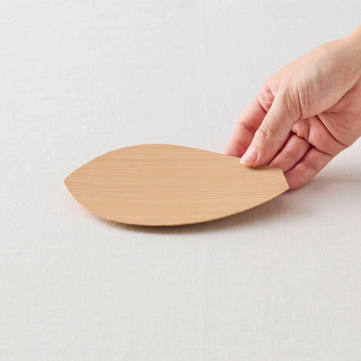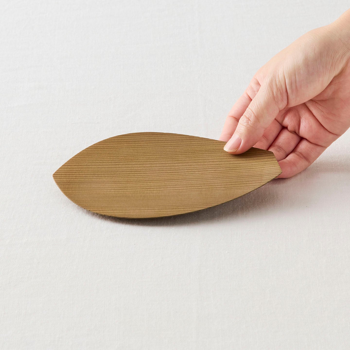 蓮の花びらをかたどった「蓮弁皿」。杉が魅せる穏やかな木目が、ぬくもりを感じさせてくれます。