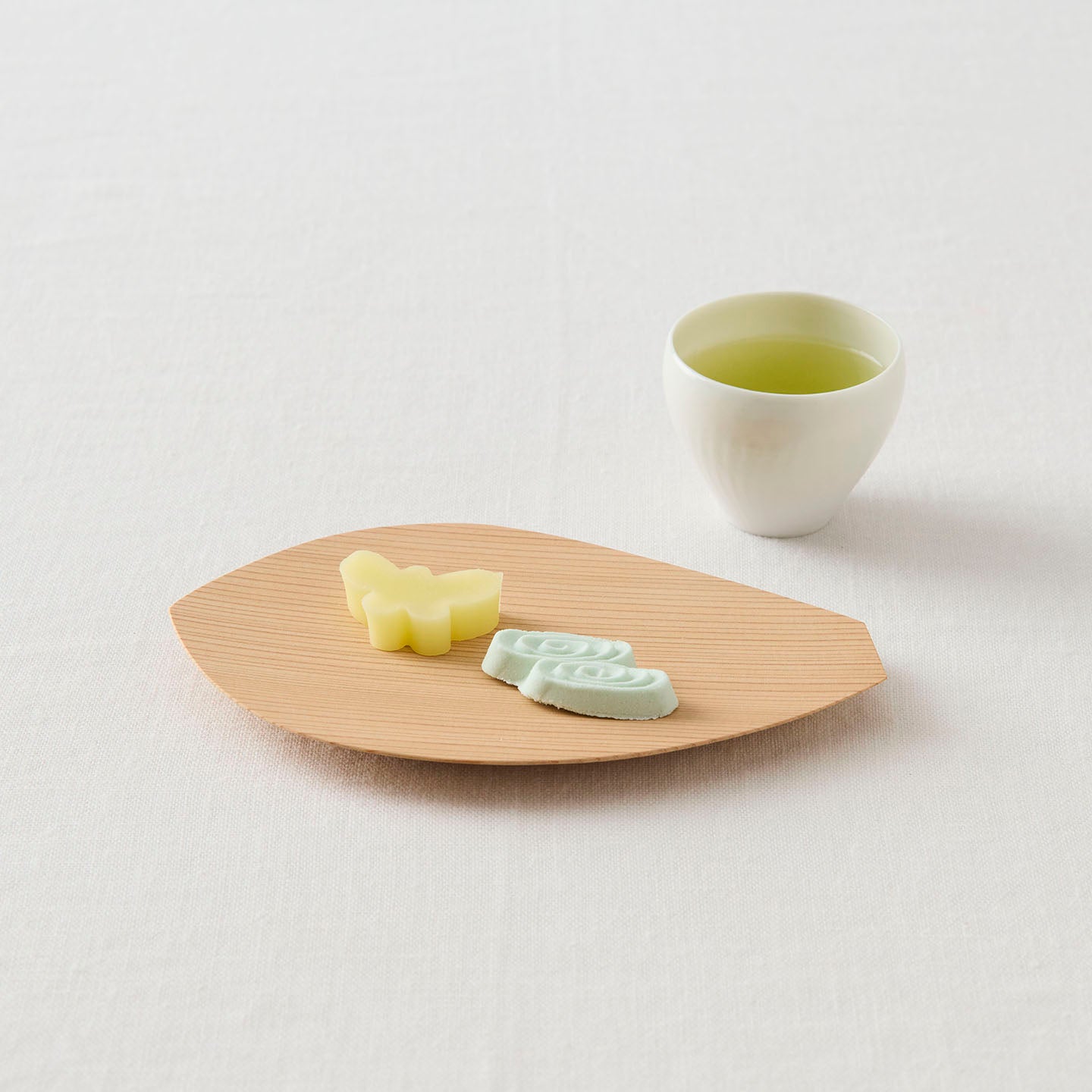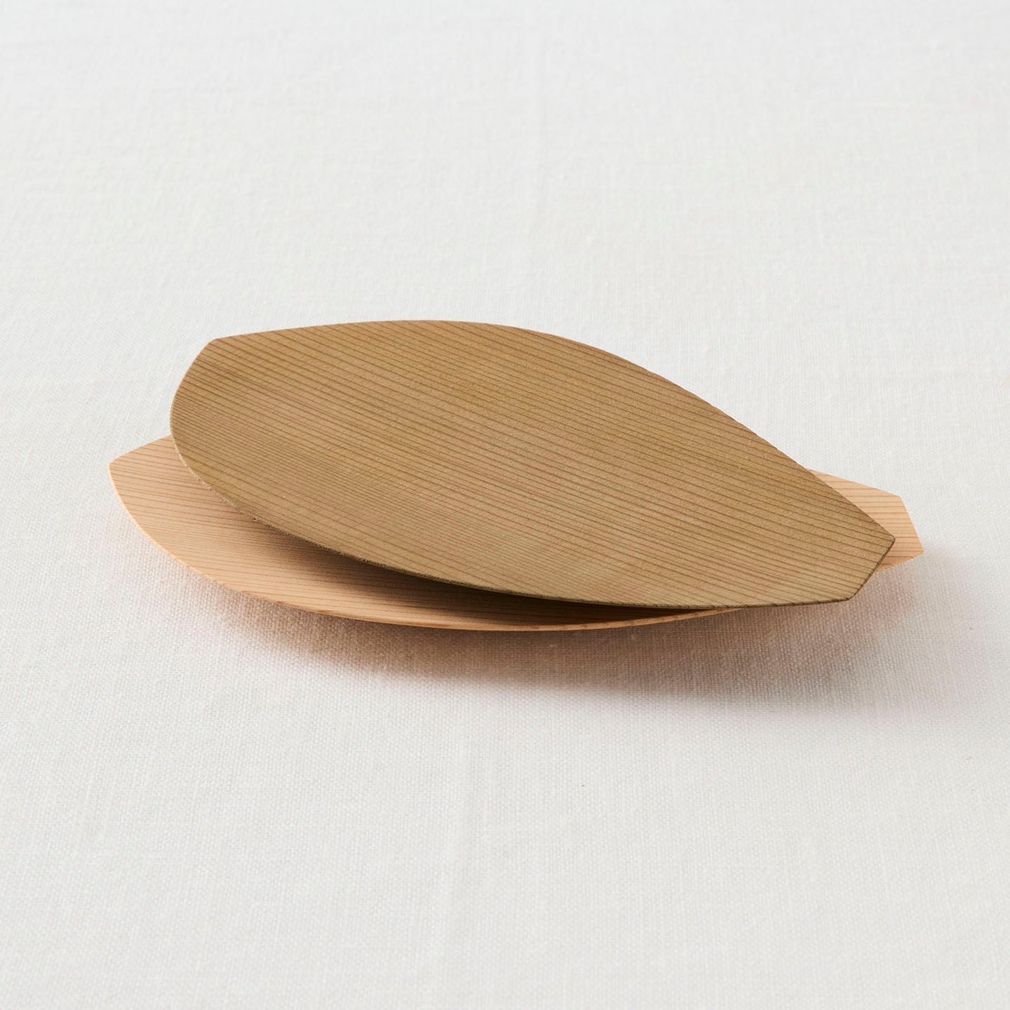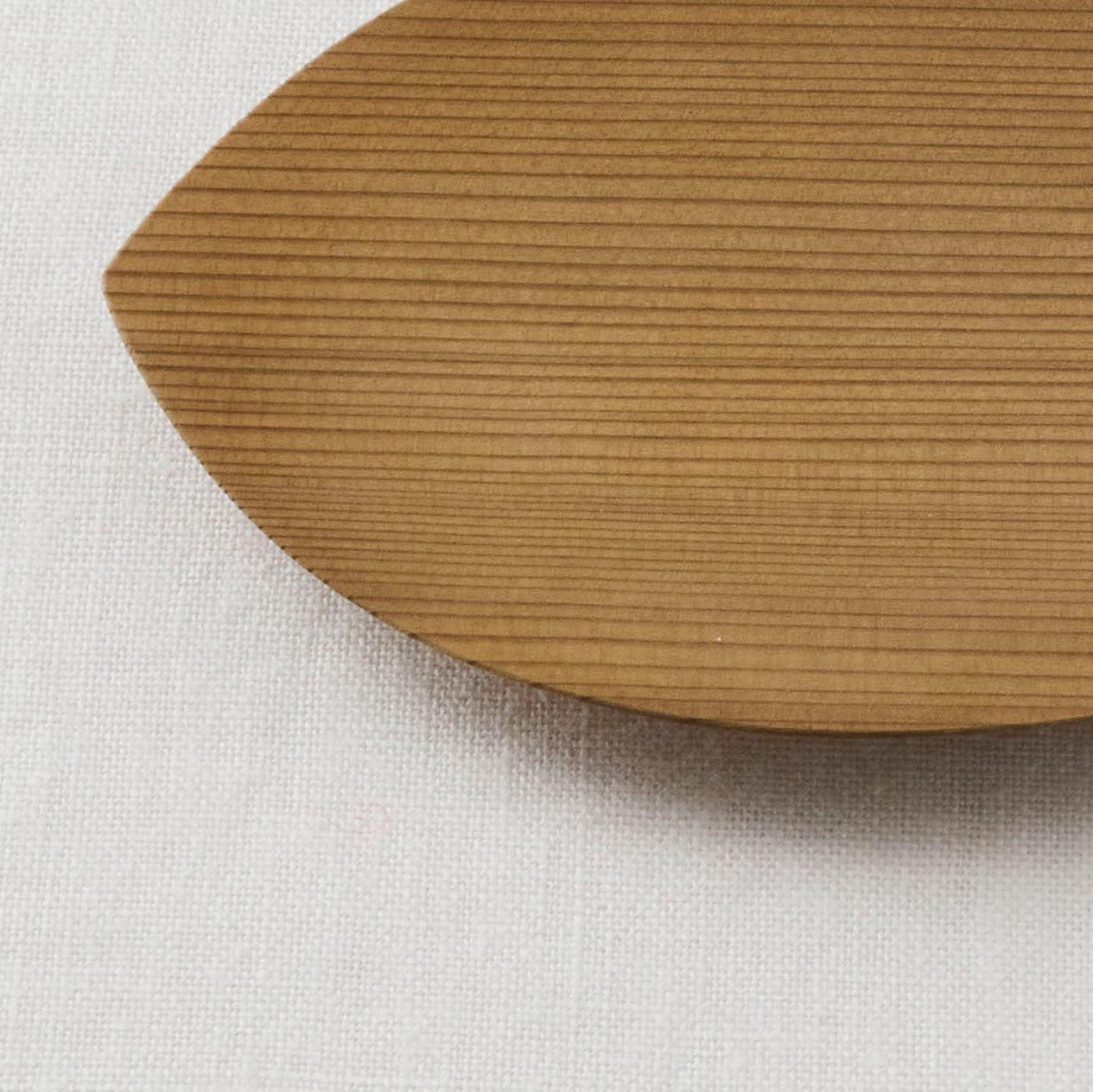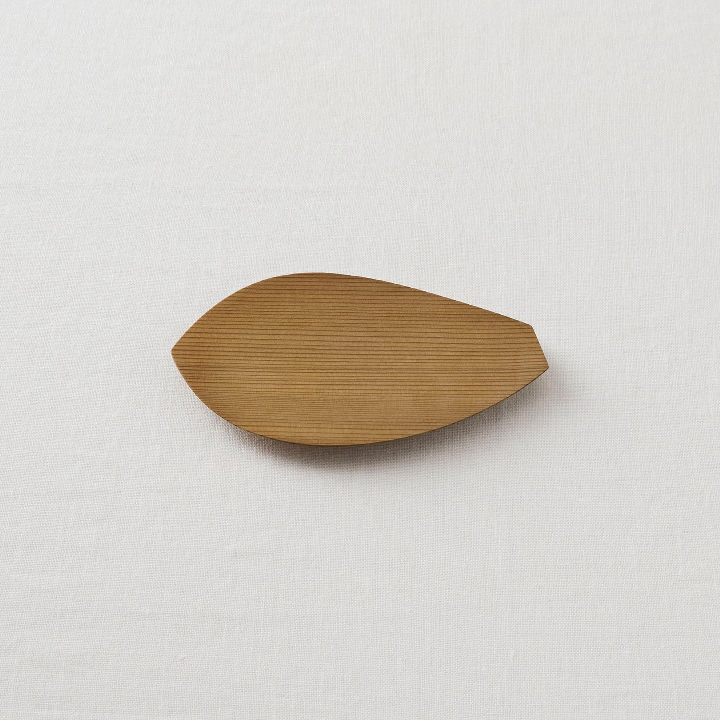 蓮の花びらをかたどった「蓮弁皿」。杉が魅せる穏やかな木目が、ぬくもりを感じさせてくれます。