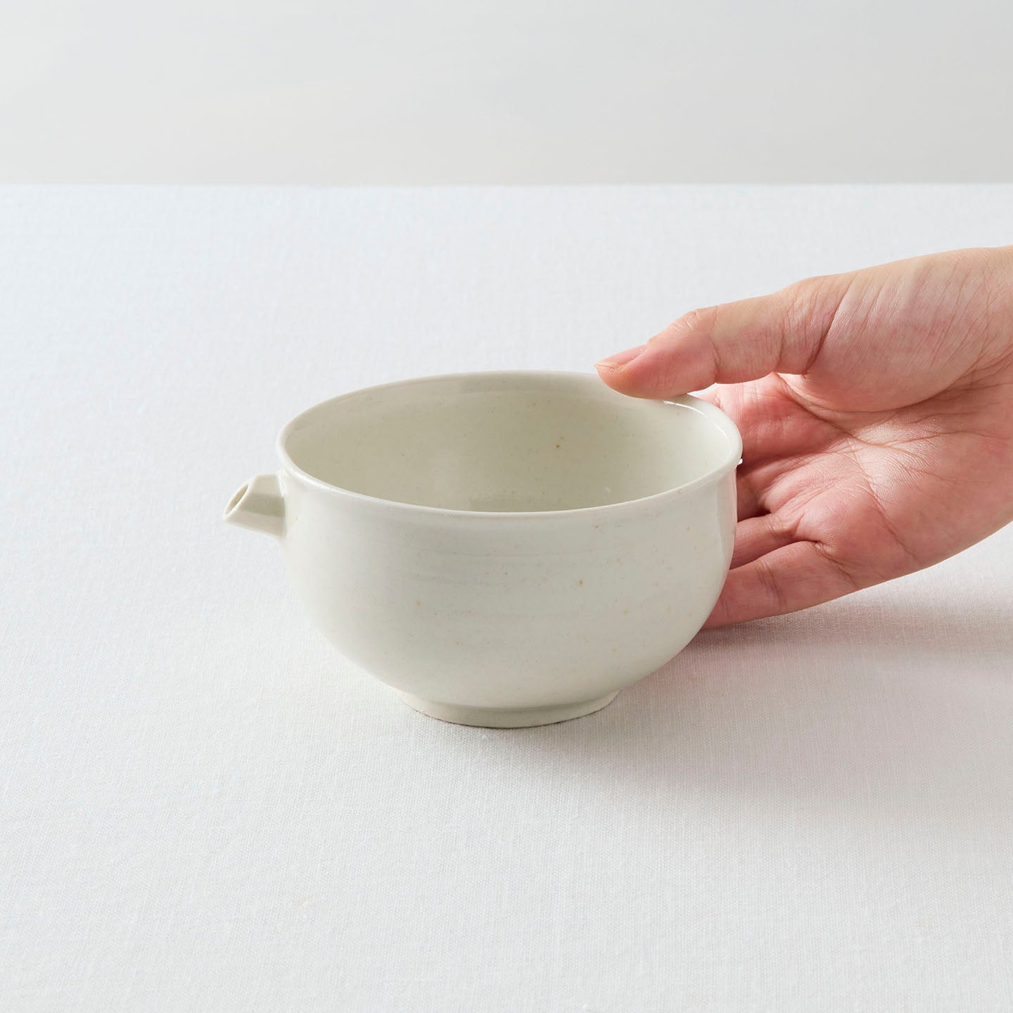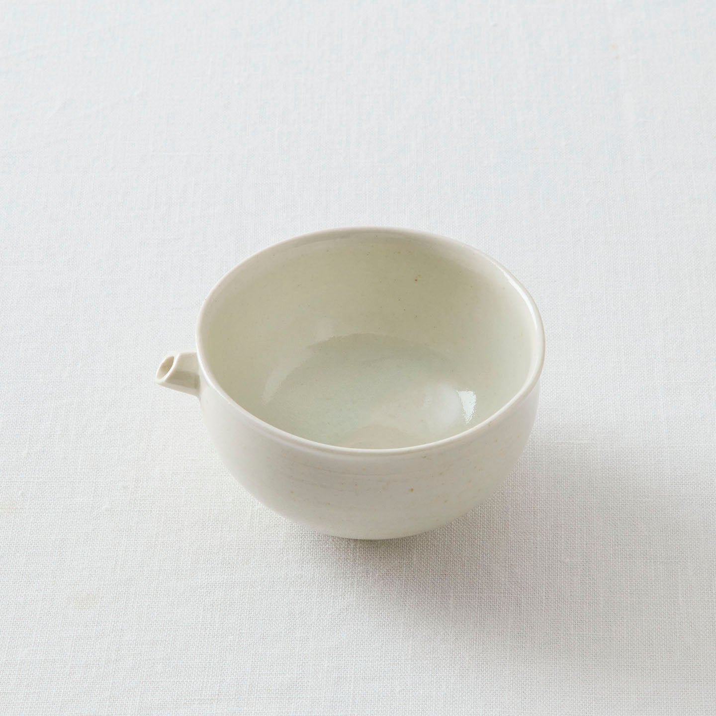 すっと伸びた口先と、ころんとした丸みを帯びた胴の対比が美しい、小ぶりな「白瓷丸片口」。白瓷ならではの、静けさをたたえた光沢が、凛とした気配を漂わせます。