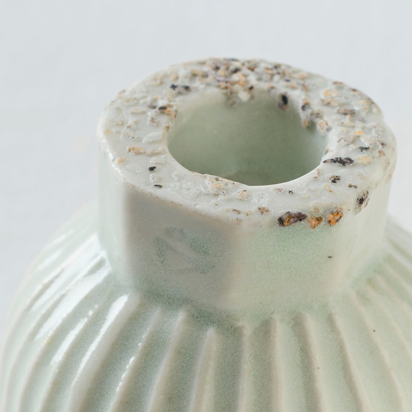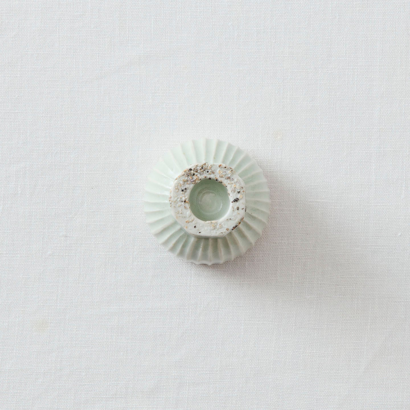 やわらかな白の中に、ほんのりと青みを帯びた色調の「白瓷高台面取鎬盃(約60ml)」。手に取ると、外側に施された線刻が光を受けて陰影をつくり、どこかリズムのある表情を見せてくれます。