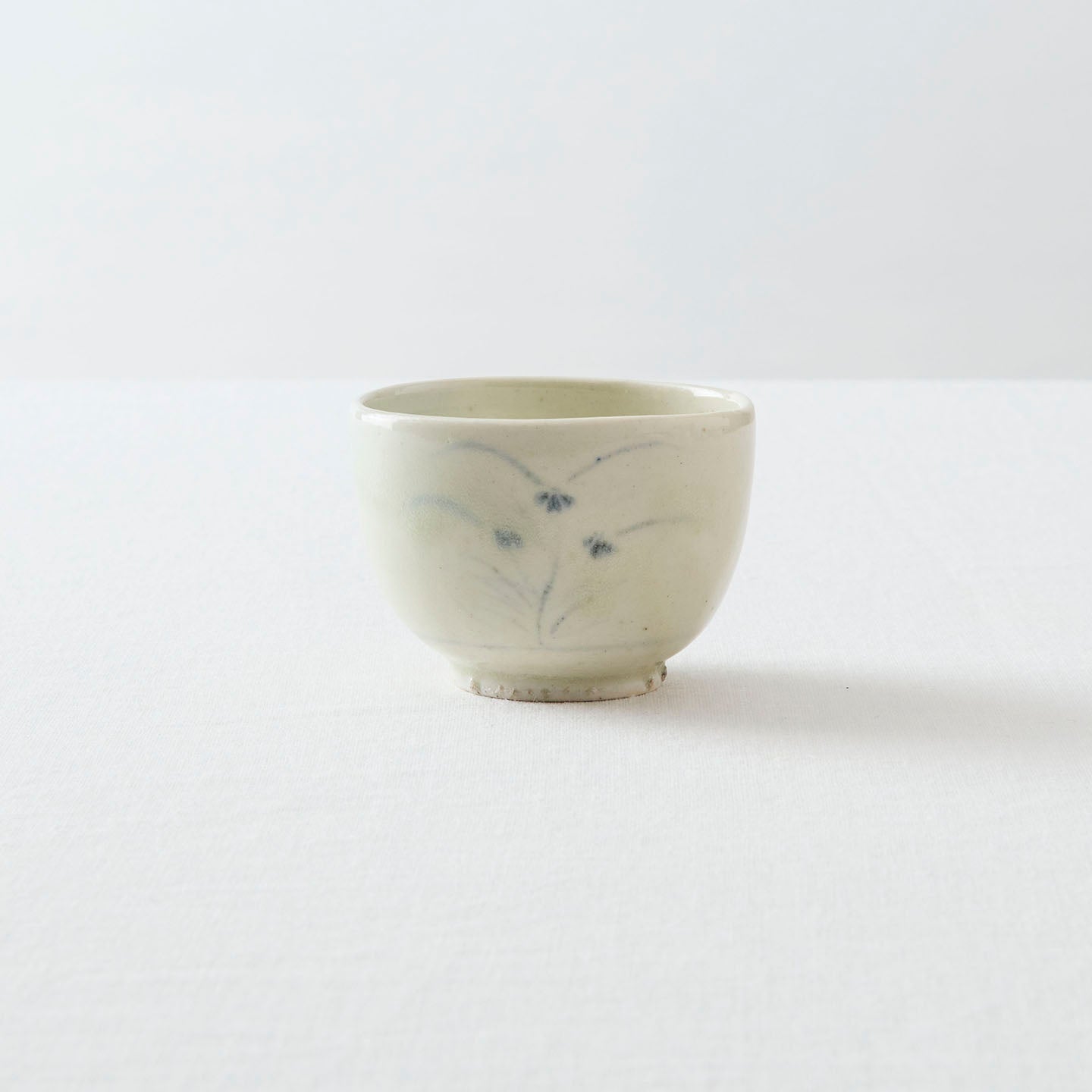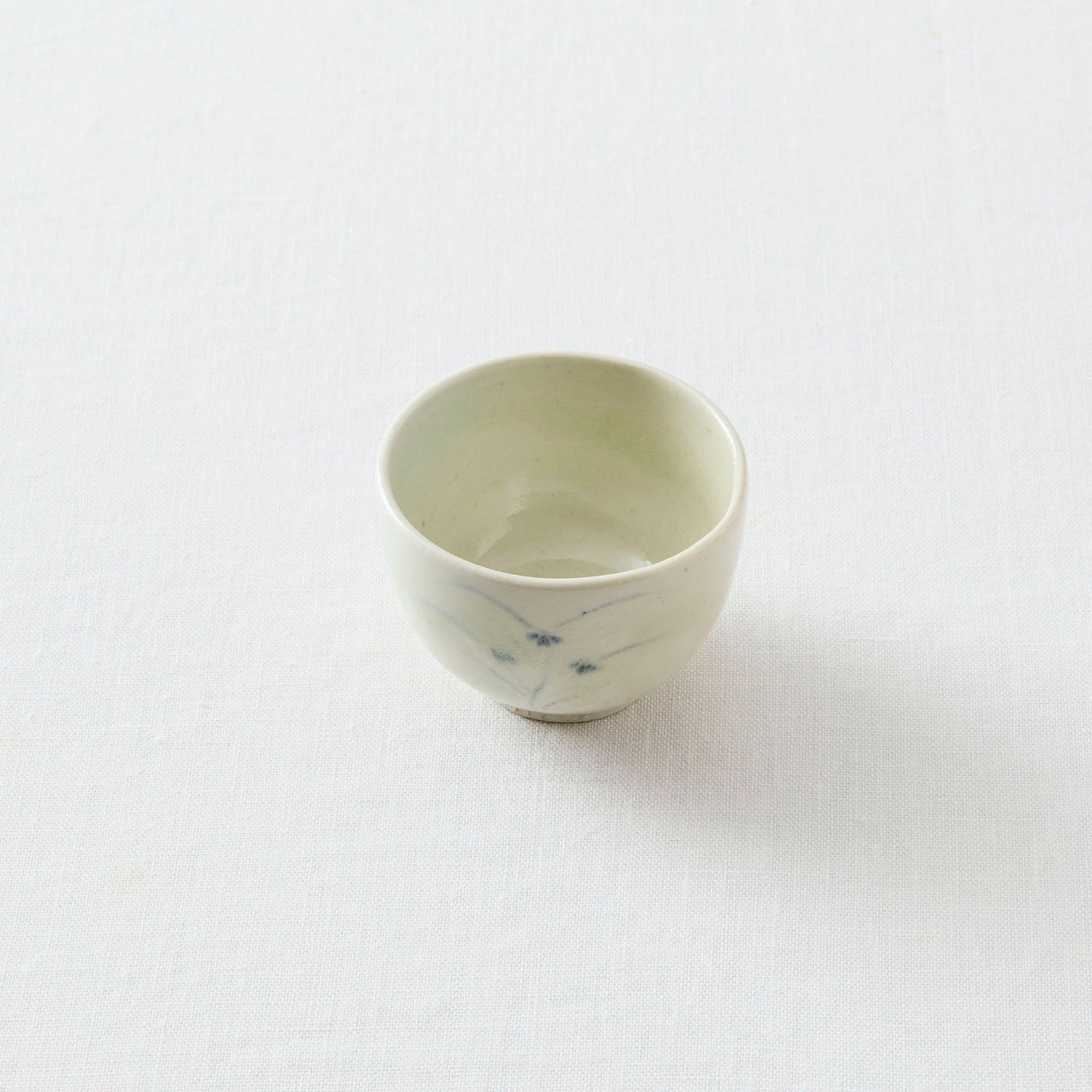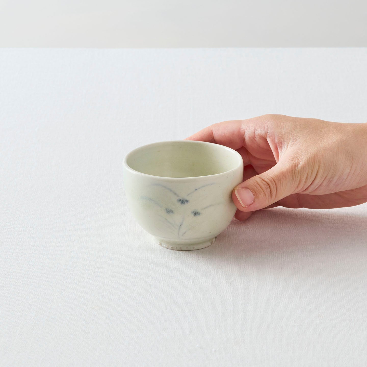 静けさと、深いぬくもりが宿るタナカさんの器たち。このたび、煎茶堂東京でお取り扱いが始まります。今回は「青花秋草文盃(約70ml)」をご紹介します。