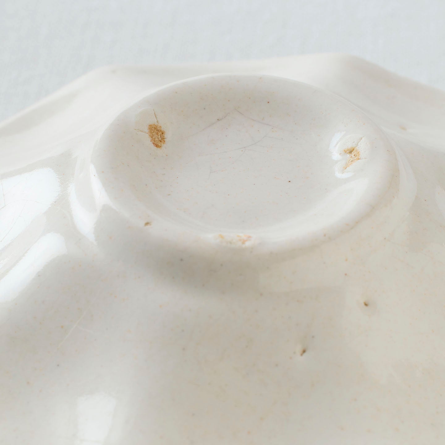 ヒラヒラしていてかわいいお皿だなーと思い、購入しました。目跡「あり」と「なし」があると商品説明に書かれてあり、どっちが来るだろうー?と楽しみにしていましたが、目跡あり!個人的に目跡が大好きなもので嬉しかったです。そして、このヒラヒラがなんとも美しく、想像以上にかわいかった。お気に入りです。