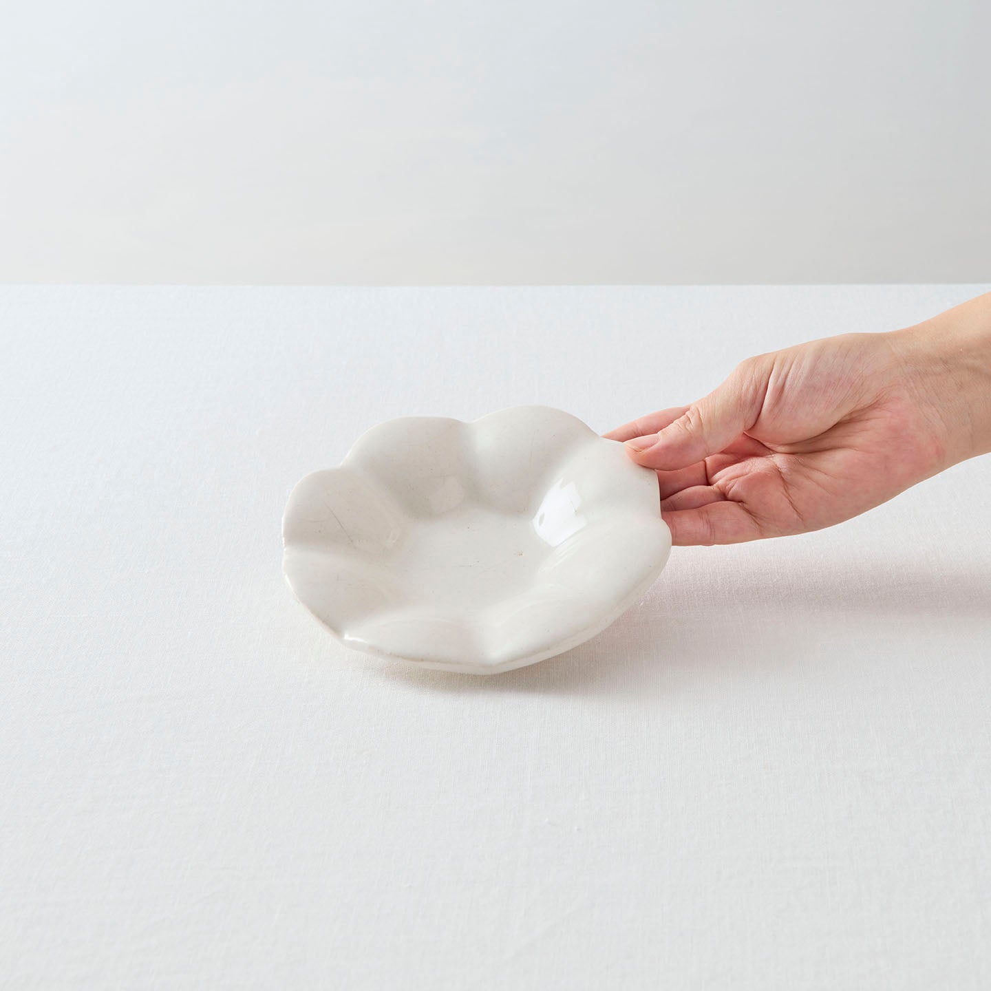 まるで花びらや雲を思わせる、やわらかなかたちが印象的な「白釉リブ小鉢」。ふんわりとした輪郭に、どこかやさしい気配が宿っています。