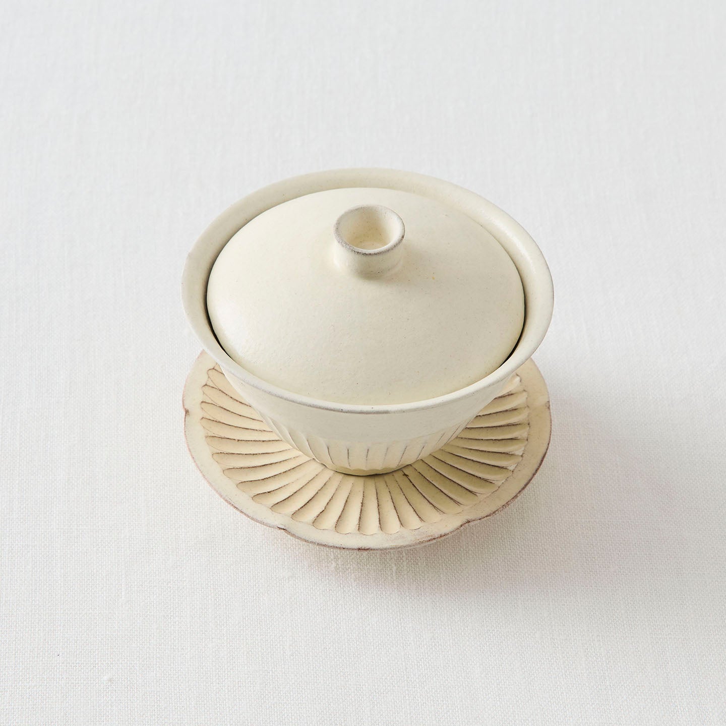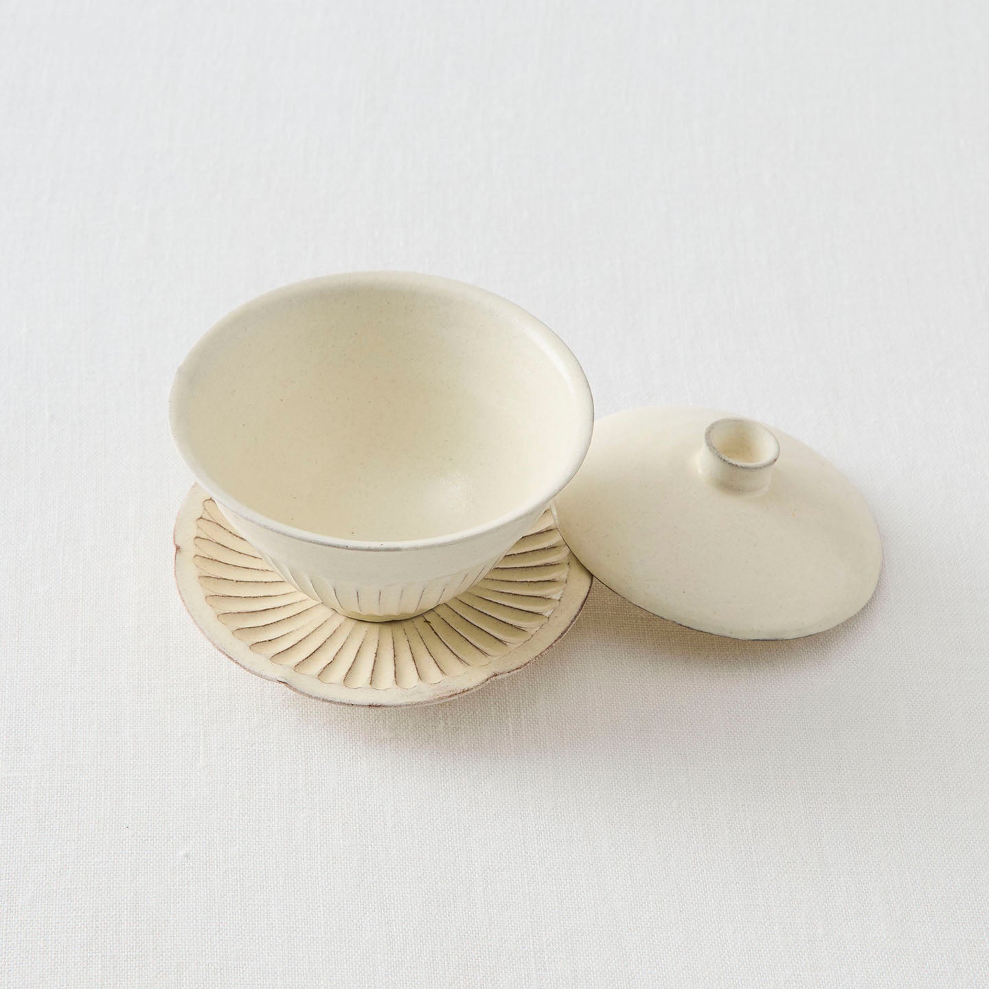 日々のお茶の時間を心地よくしてくれる、小さな相棒のような「縞蓋碗」。和でも洋でも、季節が変わっても馴染んでくれる後藤さんの白の器を、ぜひ暮らしの中で楽しんでみてください。