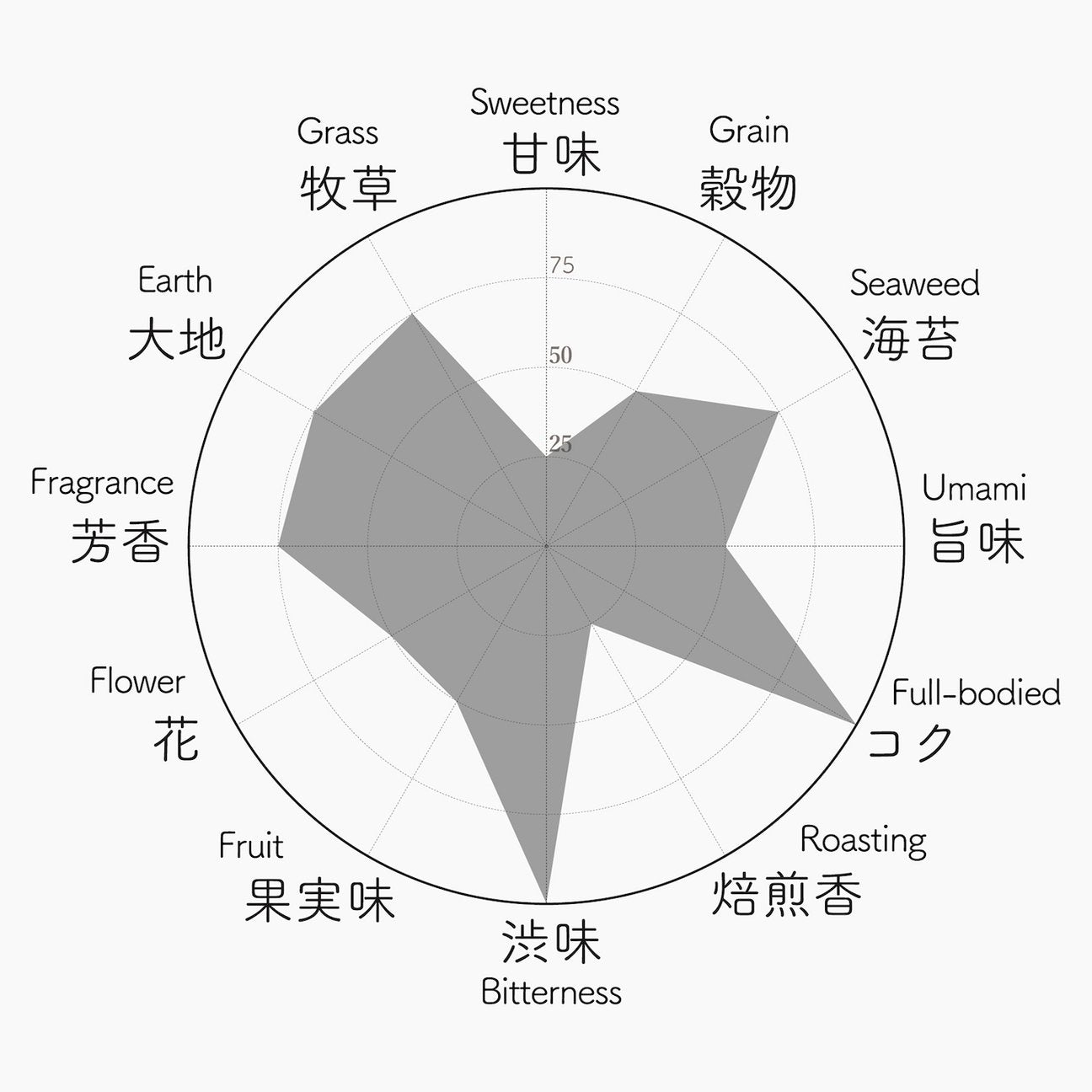 | 味わい | 甘味:★ 苦味:★★★ 旨味:★★ |