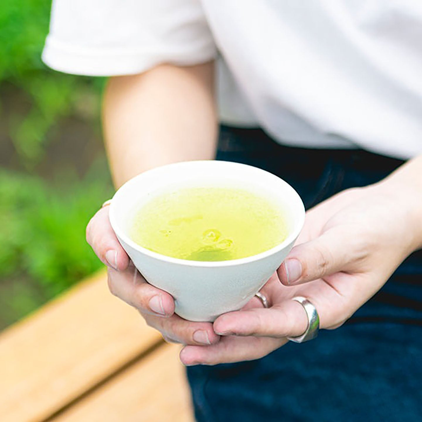 一煎目は濁りの少ない綺麗な黄緑色です。茶葉が中蒸しなので、二煎目は少し濁りがあり、鮮やかな青緑色になります。味わいだけでなく、色合いも変わっていくので、是非煎を重ねてみてください。