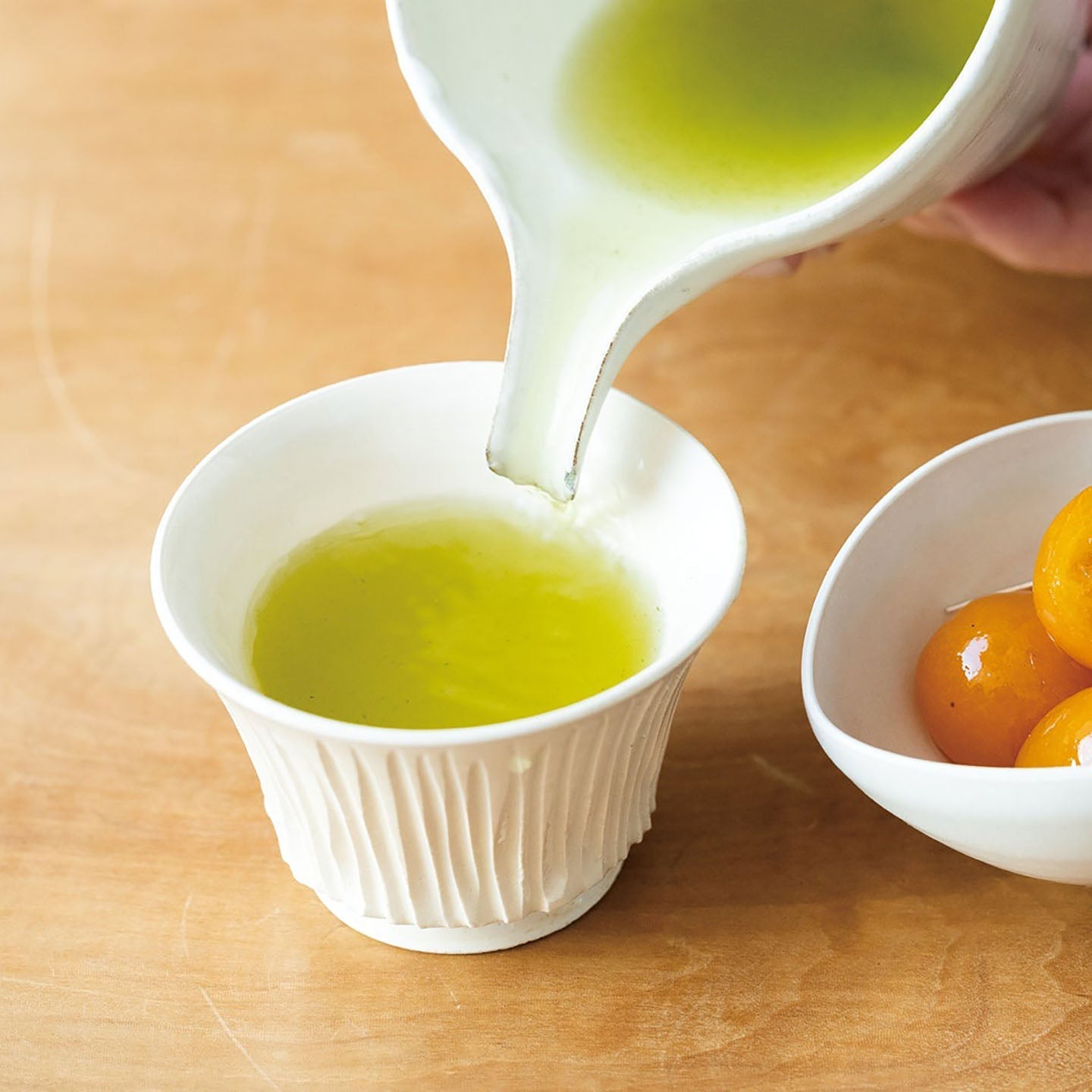 空気が乾燥して風邪をひきやすいこの季節。お茶請けに常備しておきたいのが、大寒に旬となる金柑。はちみつで甘露煮にすれば、喉や肌に優しい冬の強い味方に。 ほろ苦く甘い果実と柑橘の香りに合わせるなら、フレッシュでさわやかな「027 CA278」がよく合います。穀物を思わせるほのかに甘い香りと、まろやかなコク、ほどよい渋みを持つこのお茶。 はちみつと水でコトコトと炊いた甘露煮のこっくりとした甘みを、さわやかに洗い、きりっと引き締めてくれます。