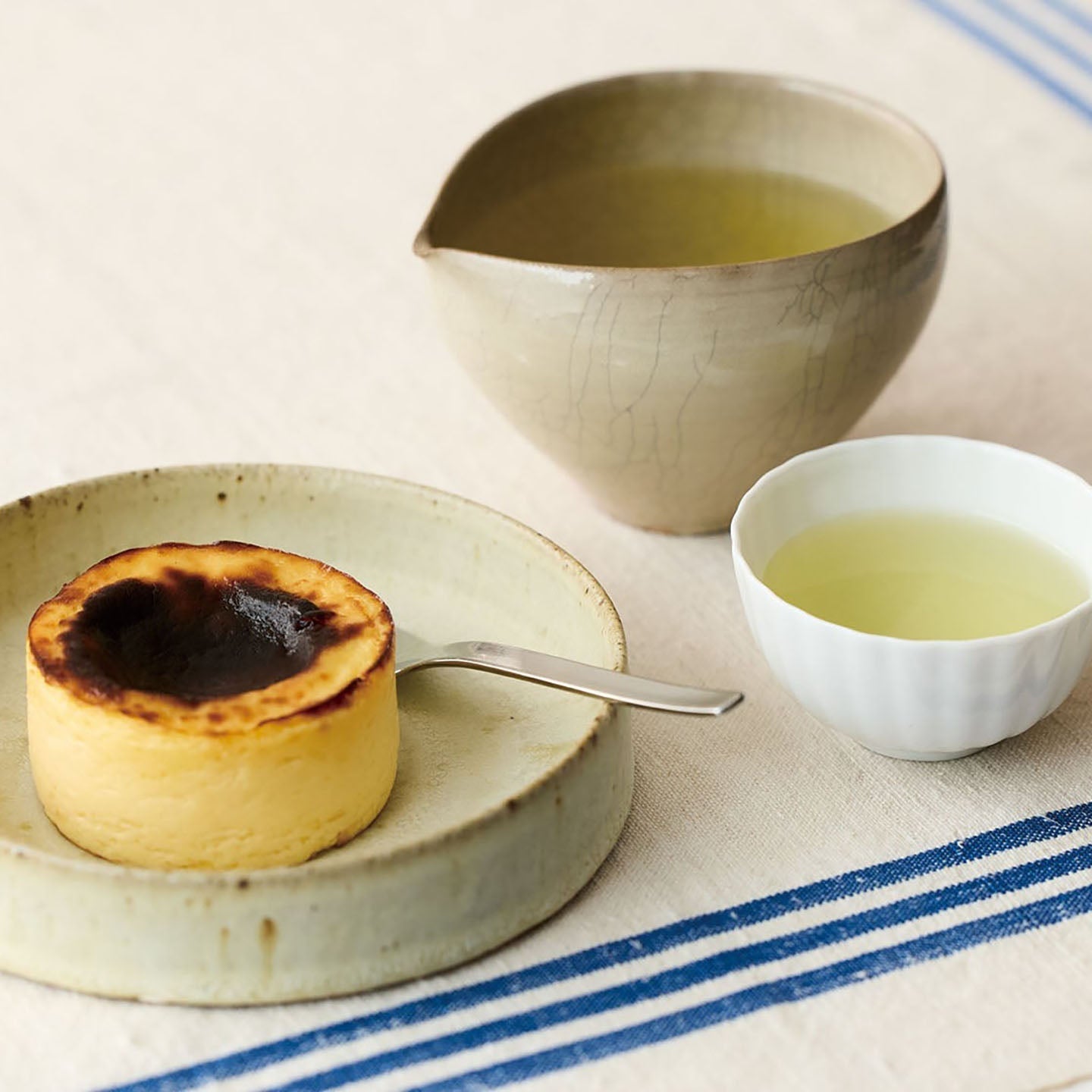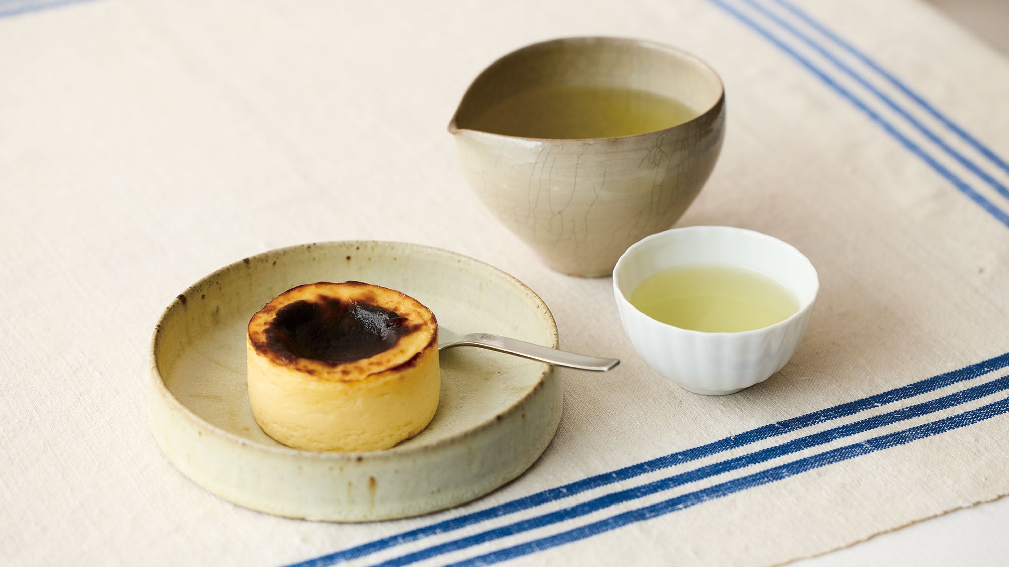 おすすめは濃厚なチーズの風味が魅力のバスクチーズケーキ。煎茶のコクがチーズのミルキーさを引き立てつつ、すっきりと口の中を洗い、次のひと口もおいしくしてくれます。