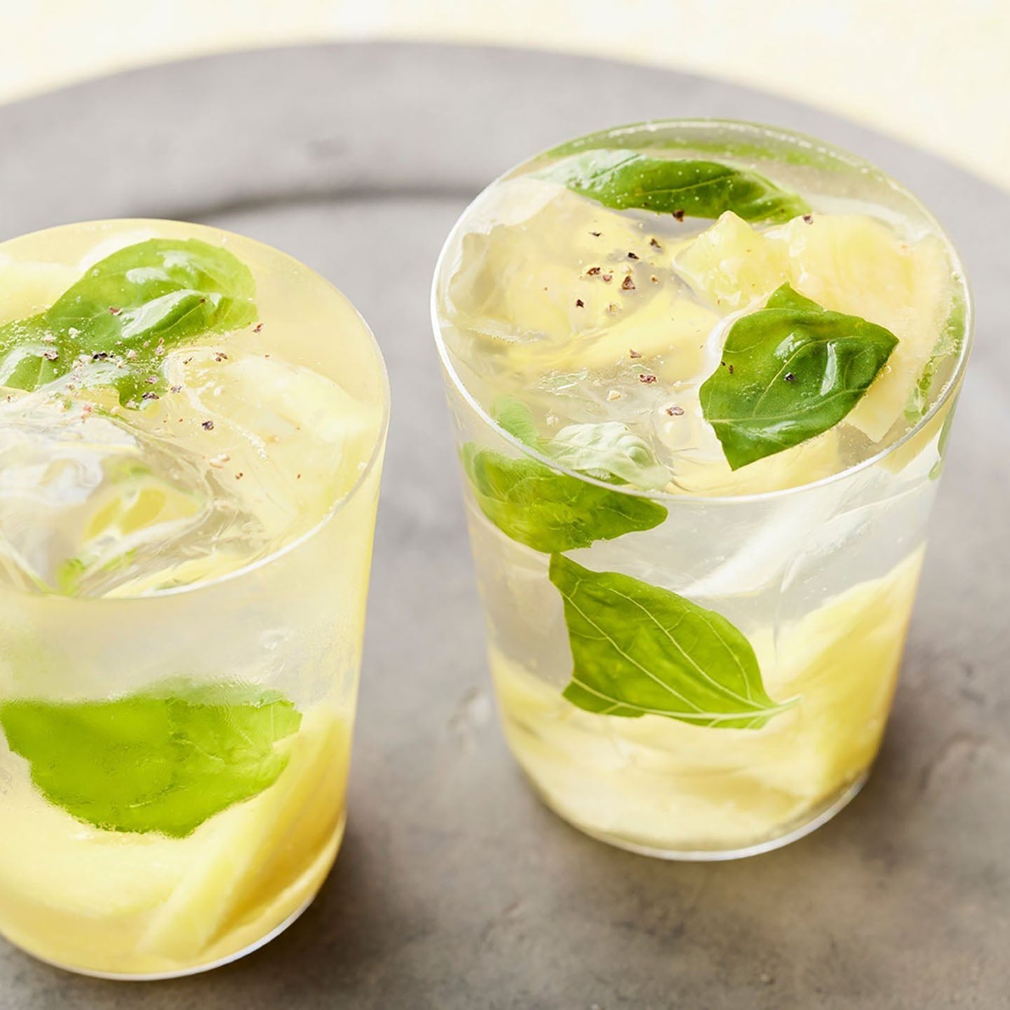 味のバランスが取れた「060 やぶきた 仁淀川」なら、フルーツと組み合わせてカクテル風に。甘酸っぱいパイナップルにふわりと香るバジル、黒胡椒のピリッとした刺激、そしてお茶の青みが一体となり、蒸し暑さも吹き飛ばすさわやかな飲み心地です。