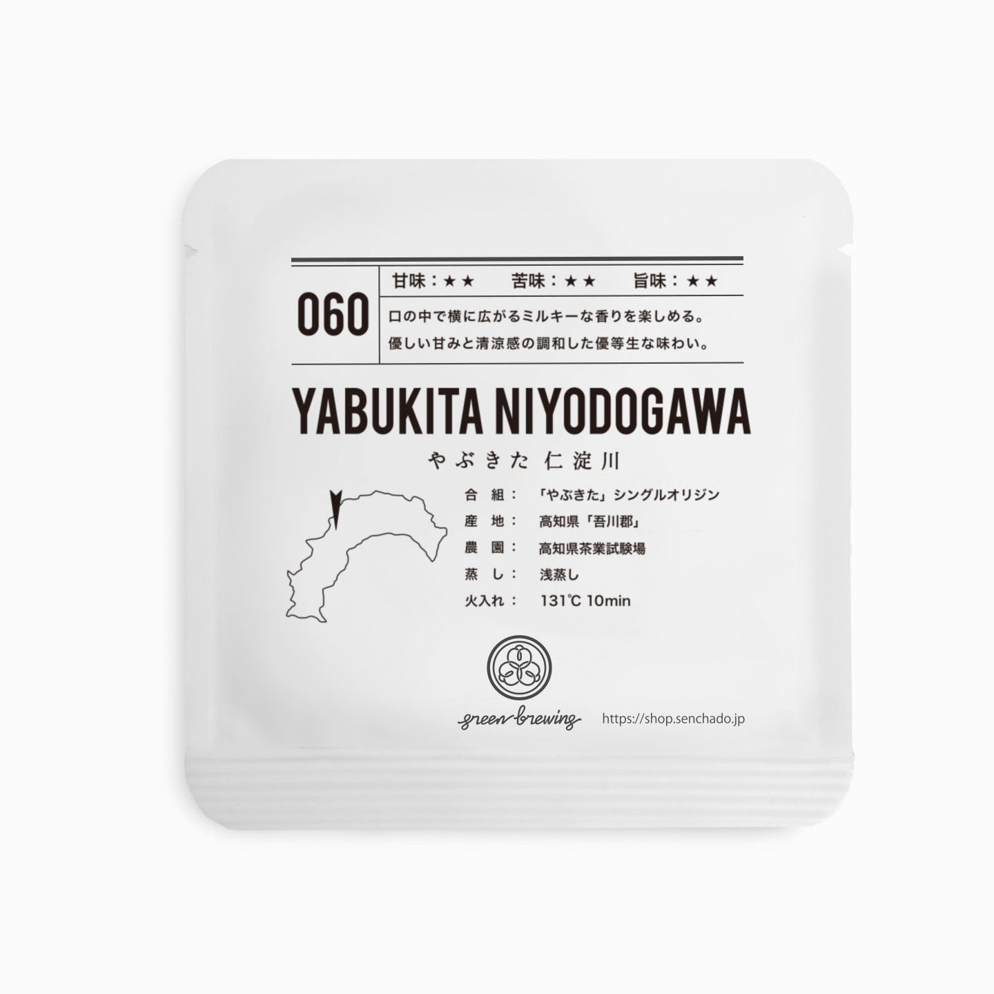 『060 やぶきた 仁淀川』はやぶきたらしいミルキーな香りと優しい甘味が特徴のお茶です。味の収まりがよく、安心して飲めるやぶきたの味わいです。