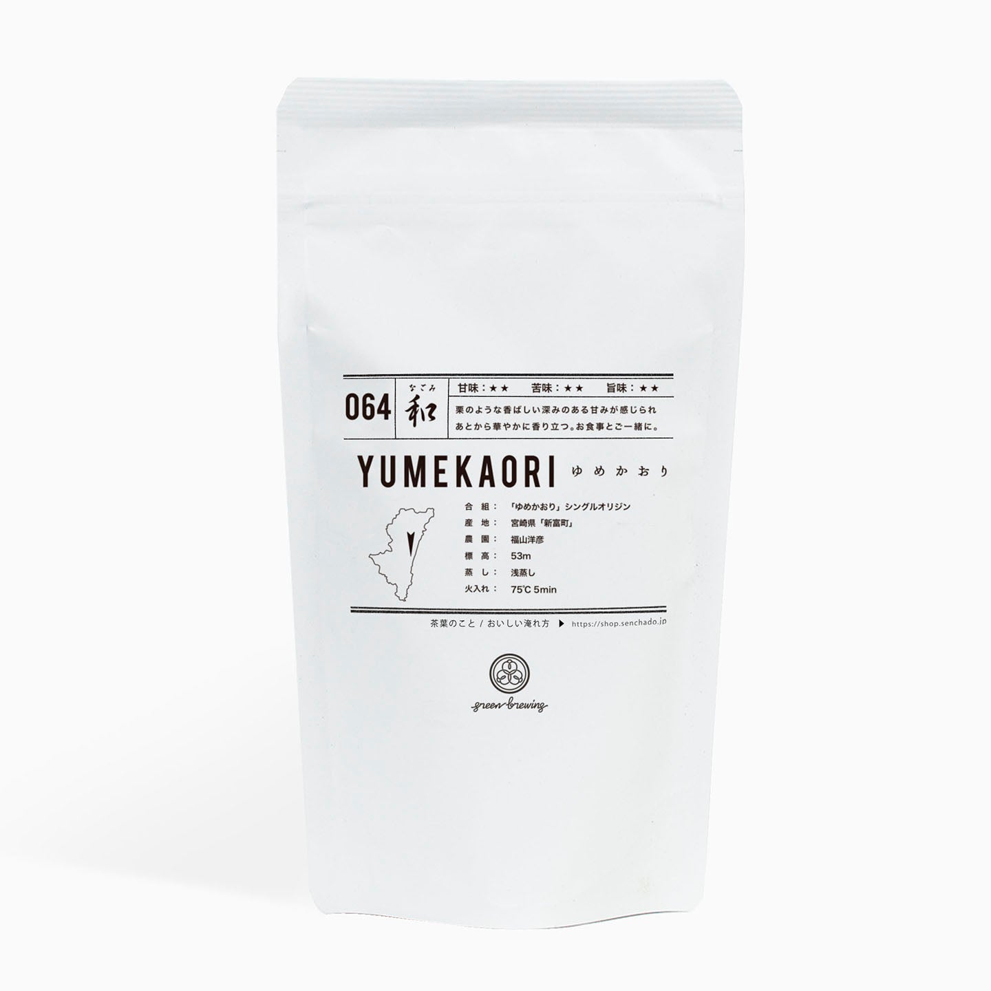 『064 ゆめかおり』は、栗のような香ばしい深みのある甘みのあるお茶です。後味がじっくりと華やかに香り立つので飲み終えたあとも一息、静かに楽しんでみてください。お食事とご一緒に召し上がっていただくのがおすすめです。