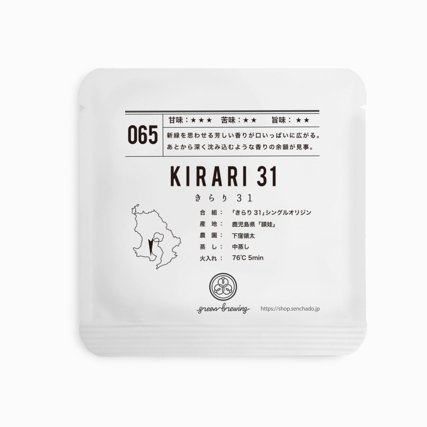 「きらり31」は宮崎県総合農業試験場茶業支場において、「さきみどり」×「さえみどり」を交配して生まれた品種です。味は清涼感があり、緑の色味がよく甘味・旨味があるのが特徴で、2016年に品種登録されたばかりとまだ非常にめずらしいものとなっています。