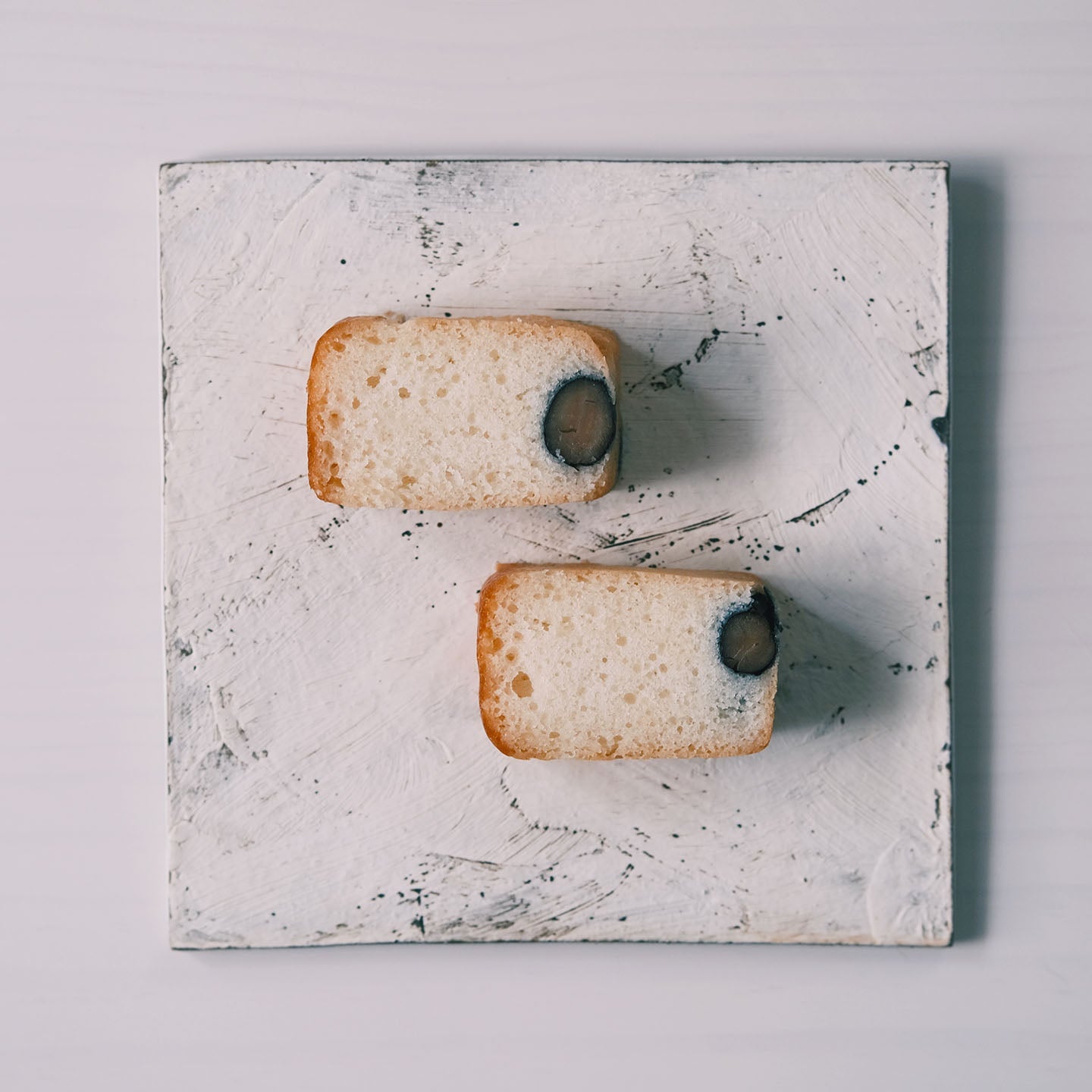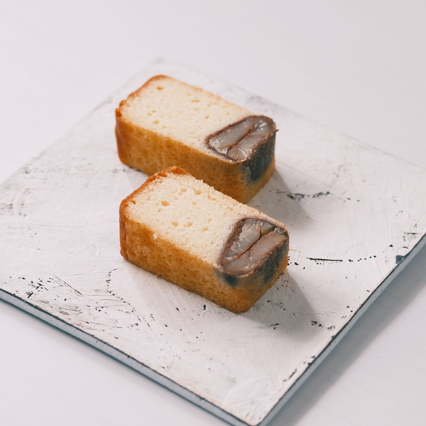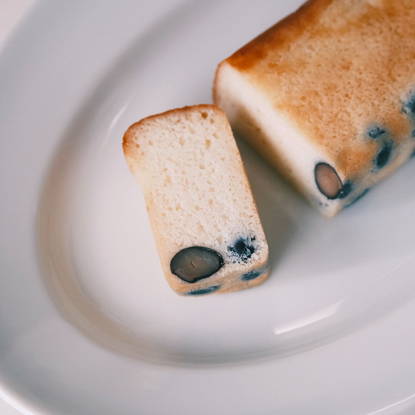 ふっくらと炊いたツヤの良い黒豆と、「白」にこだわった真っ白いパウンド生地がまさに「黒香白果」。黒豆のやさしい甘みと香ばしい黒豆焼酎の香りがたまりません。 生地はシットリとしていて、口の中に広がる香りを存分に楽しめます。