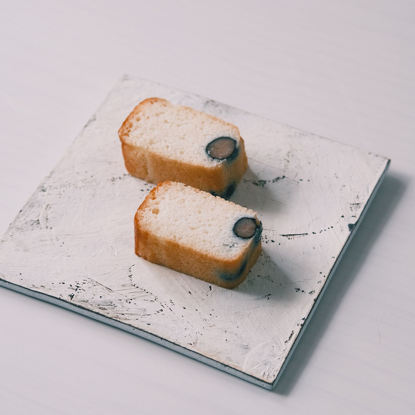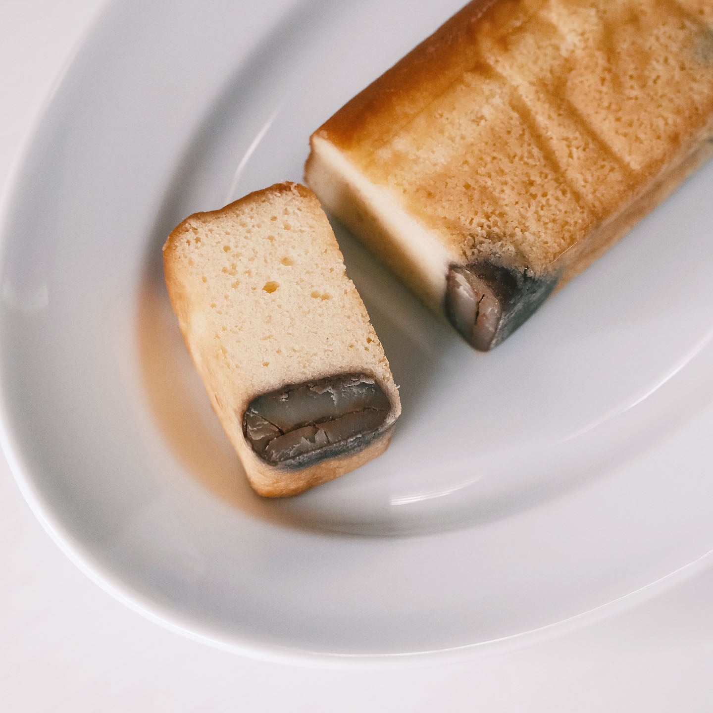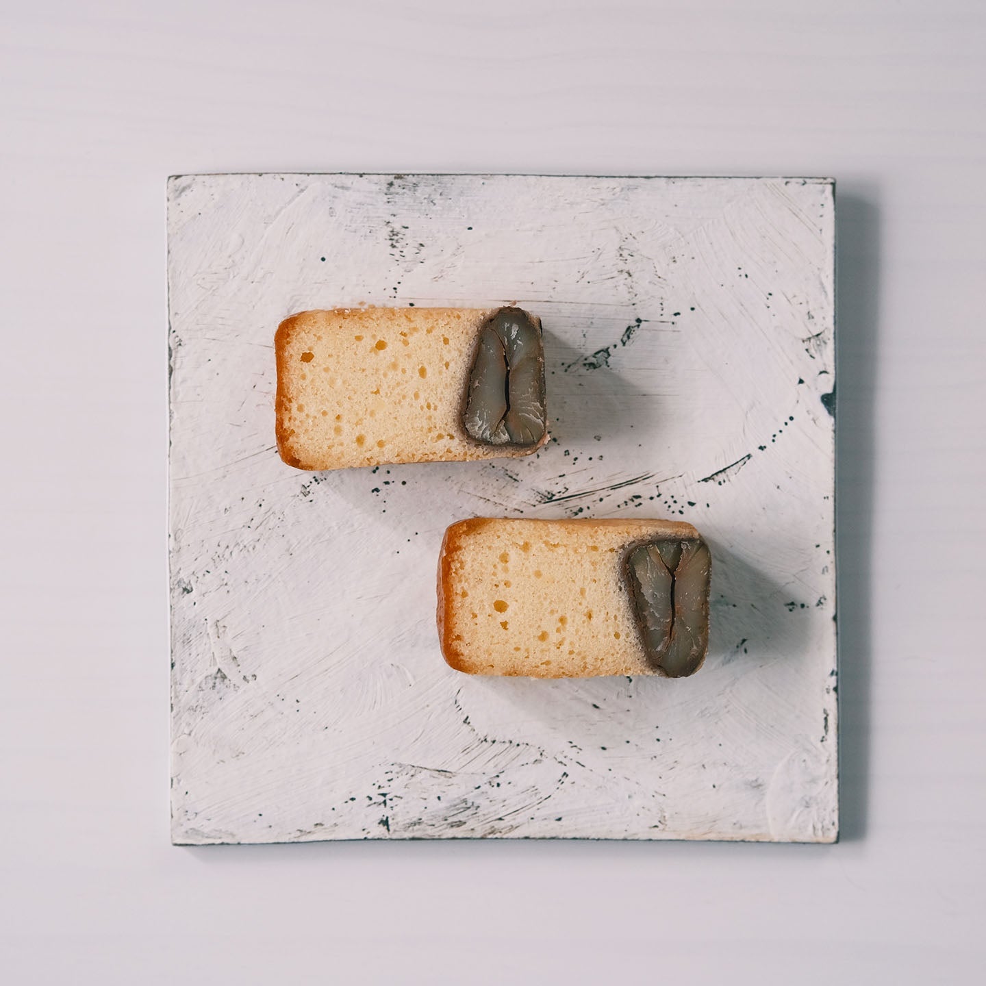 ふっくらと炊いたツヤの良い黒豆と、「白」にこだわった真っ白いパウンド生地がまさに「黒香白果」。黒豆のやさしい甘みと香ばしい黒豆焼酎の香りがたまりません。 生地はシットリとしていて、口の中に広がる香りを存分に楽しめます。