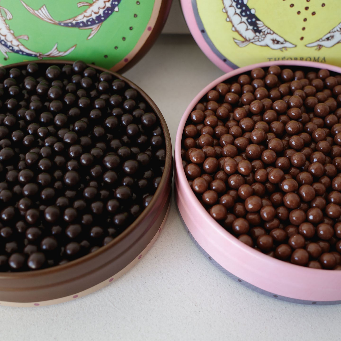 そんな厳選したチョコレートでシリアル(小麦クランチ)をコーティングし「キャビア」の形を模したチョコレートです。