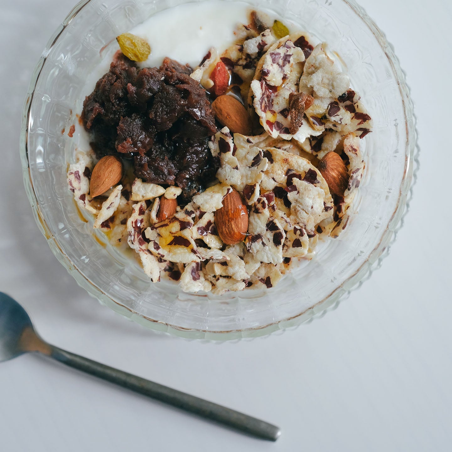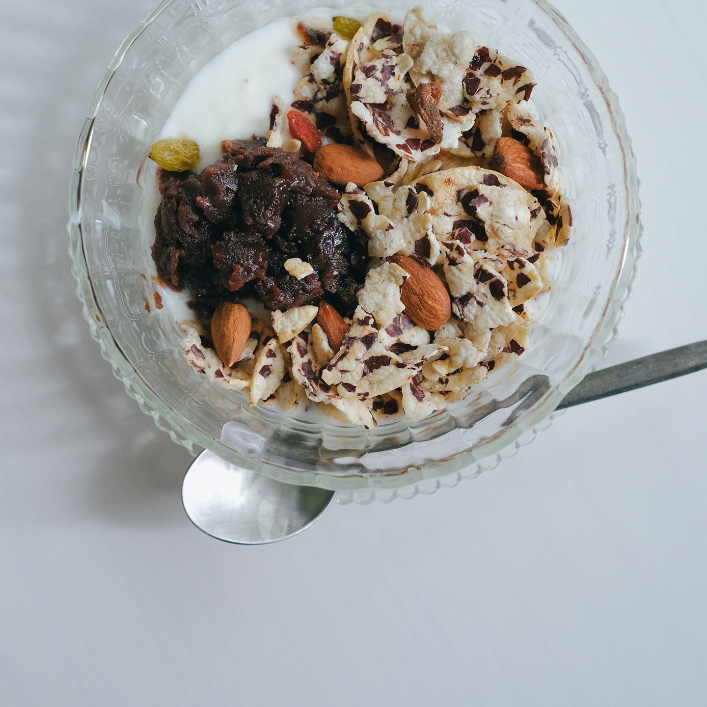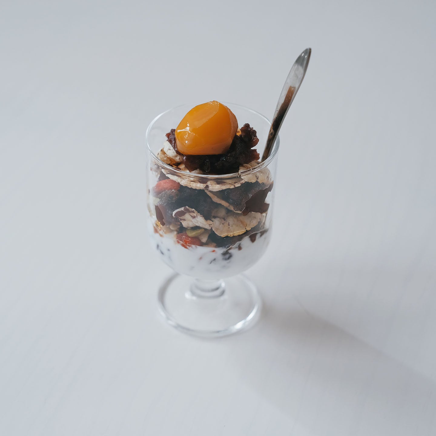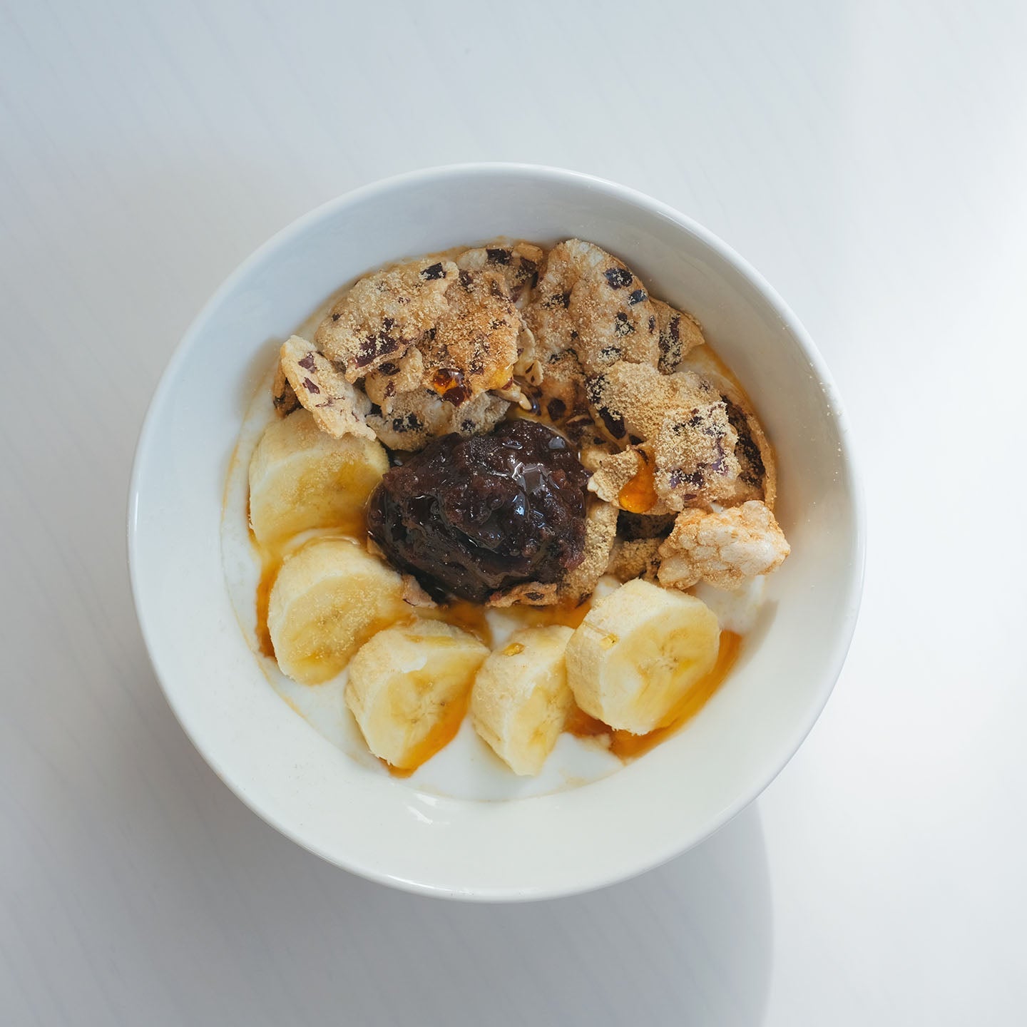 グラノーラに豆乳をかけて、つぶあんをのせると、さっぱりしていて飽きのこない味わいです。食べたあとに残る豆乳には、あんこが溶け出していて、あっという間に完飲してしまうあんこドリンクに。さらりと食べられて満腹感を感じるので、忙しい朝にぴったりです。