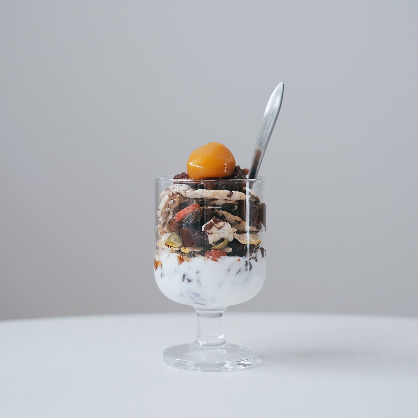 小腹が空いたおやつの時間には、ちょっと手間をかけてパフェ風に。秋は和栗、夏にはアイスクリームが合いそう。