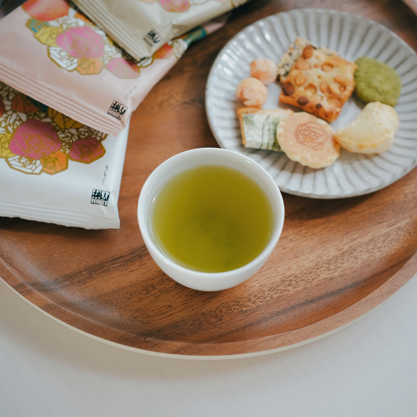 「ななこ 壱」は海苔や抹茶、梅あられなど和の詰め合わせ。こちらはクラシカルな旨味と苦味バランスが良いお茶がおすすめ。