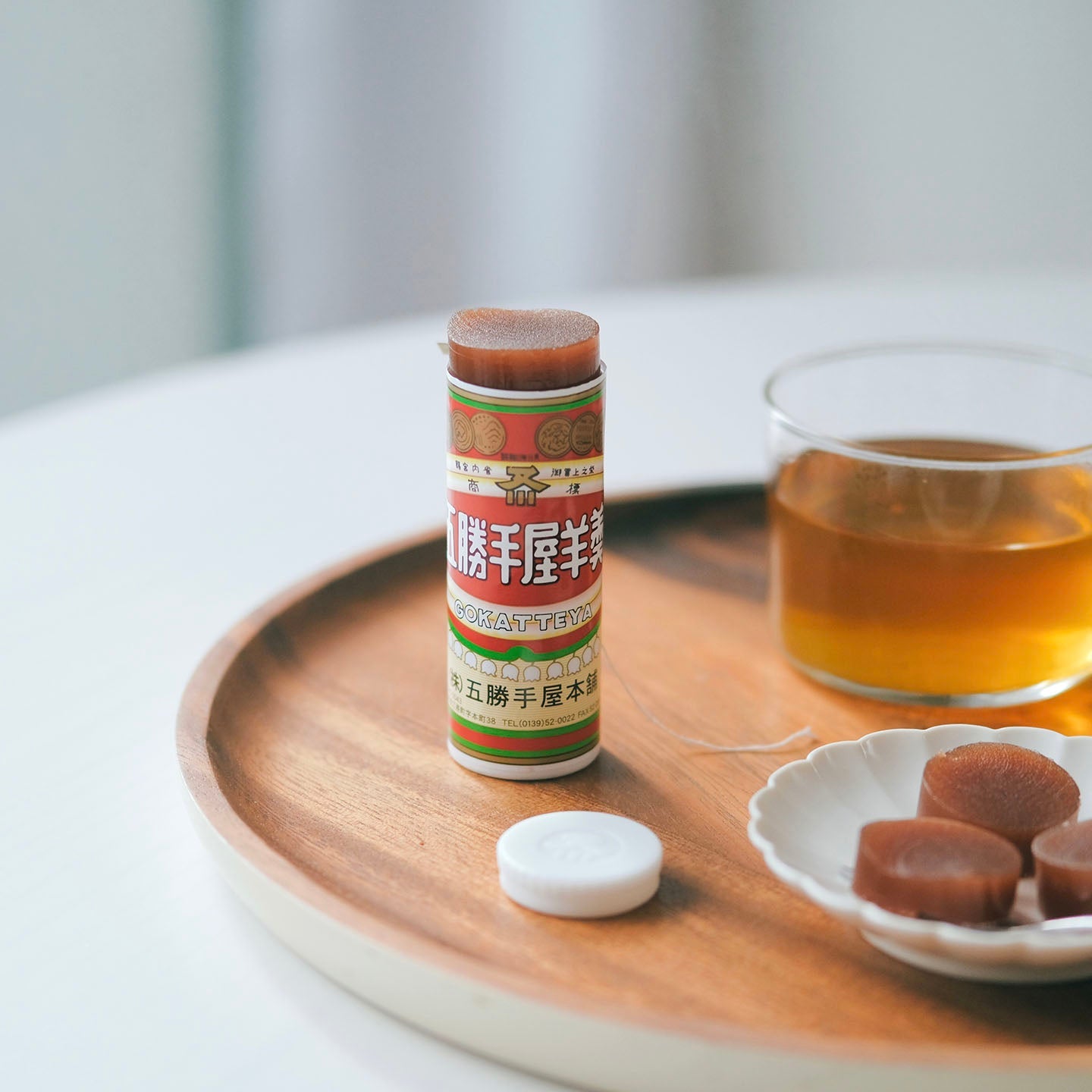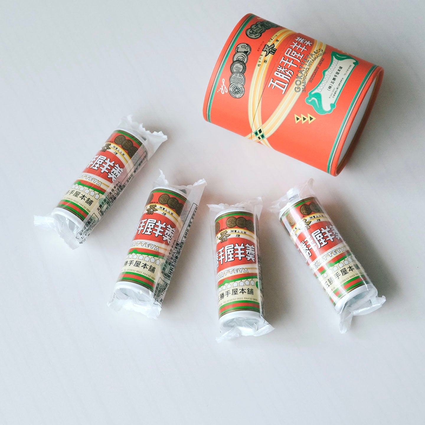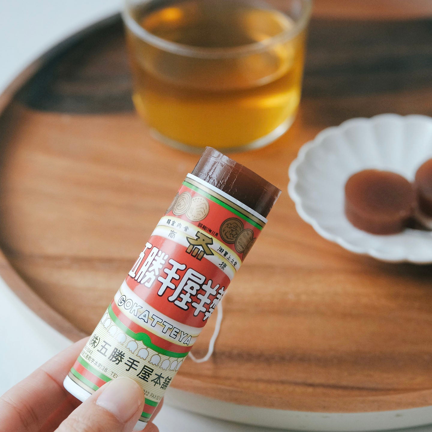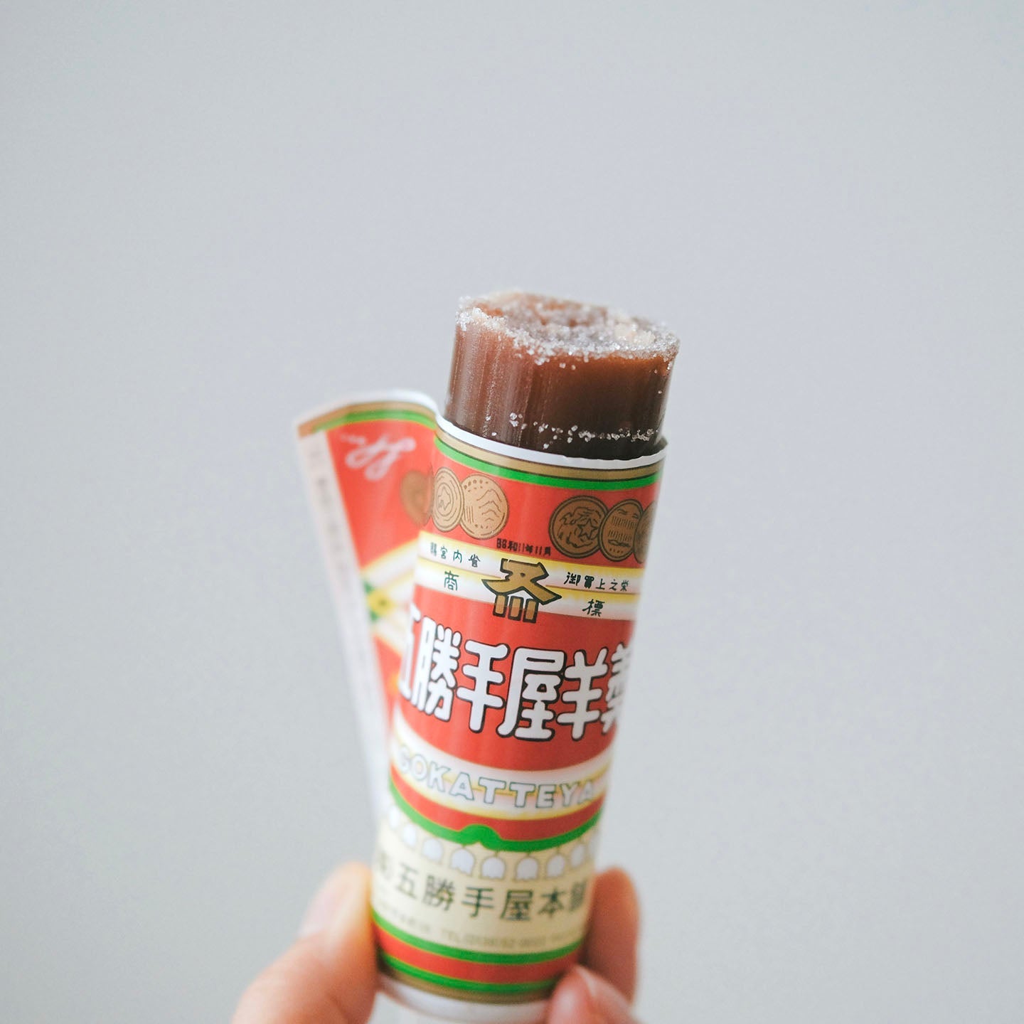 五勝手屋本舗は、明治3年創業の老舗。北海道の南にある江差町で作られています。糸式羊羹の最古参で、円筒状の紙パッケージに入っています。