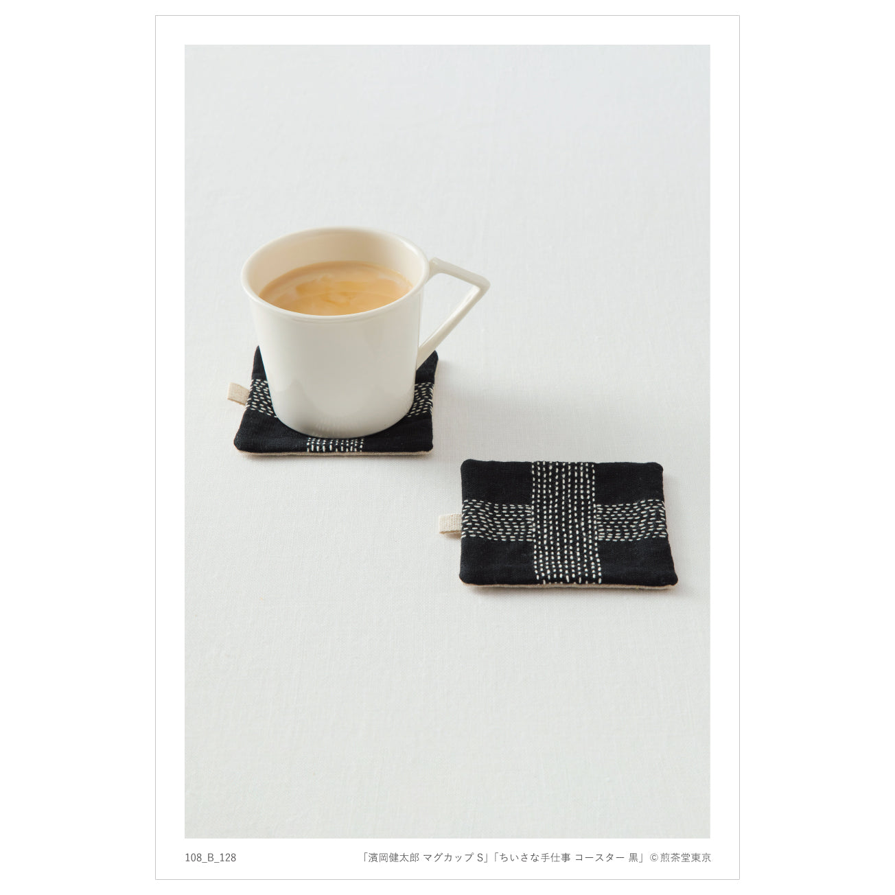 濱岡健太郎さんのマグカップと、ちいさな手仕事のコースター、煎茶堂東京のオリジナルコットンバッグ、ポストカードを組み合わせた、数量限定の特別なギフトセットです。落ち着いたトーンの器と、布のぬくもりが日々の休息に寄り添います。コーヒー好きや読書時間を楽しむ方への贈りものに。