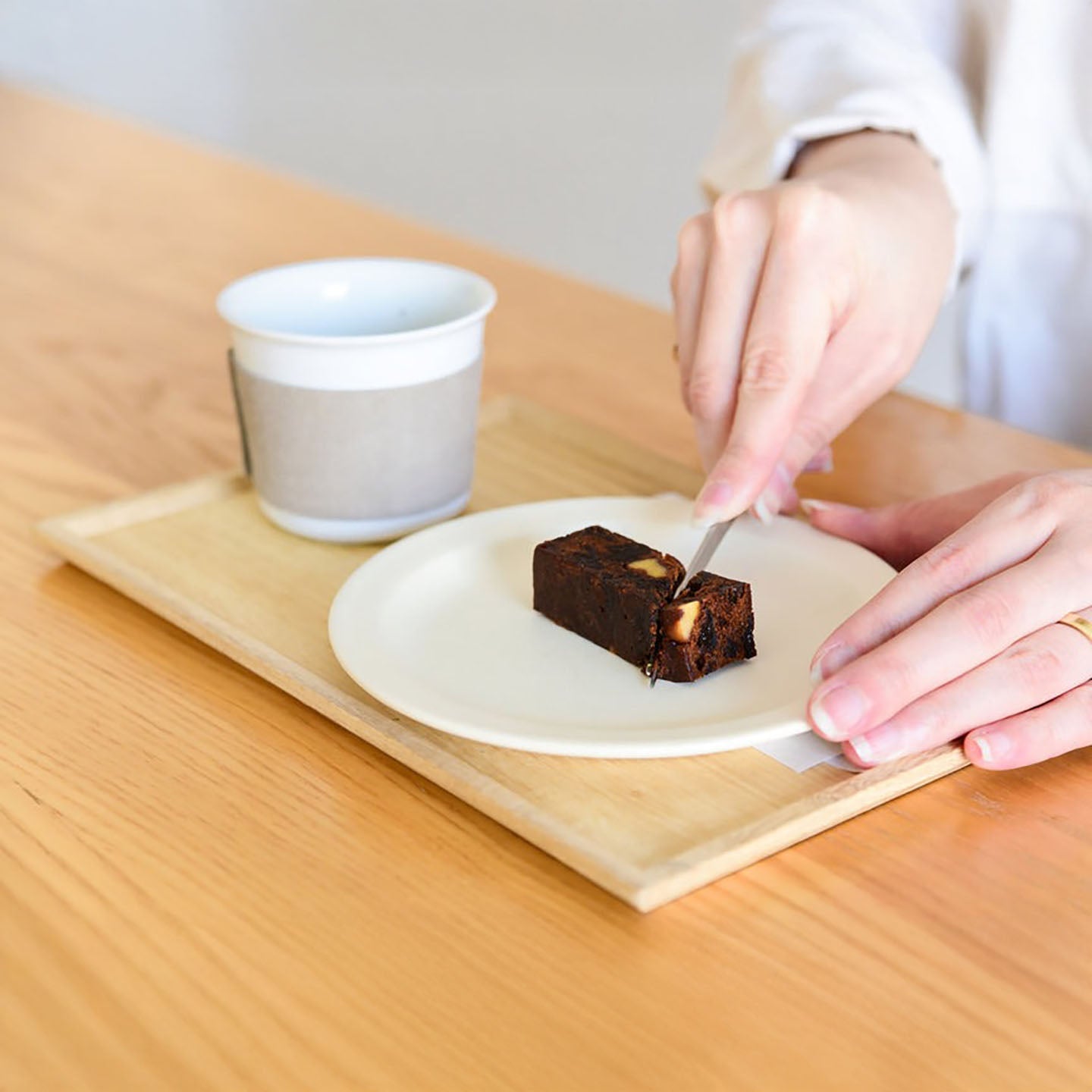 これ以上差し引くものがないという状態で美しく仕上げてくださるのですが、そこからさらに「引き算」してミニマルなお盆を作りたいというわがままを通し、誂えてもらうことに。