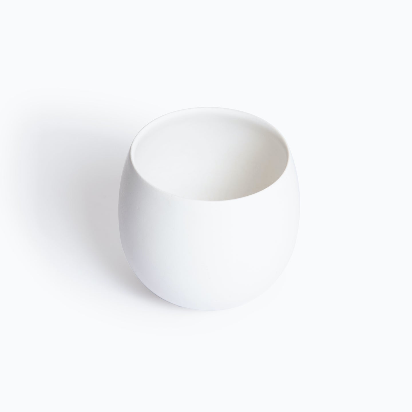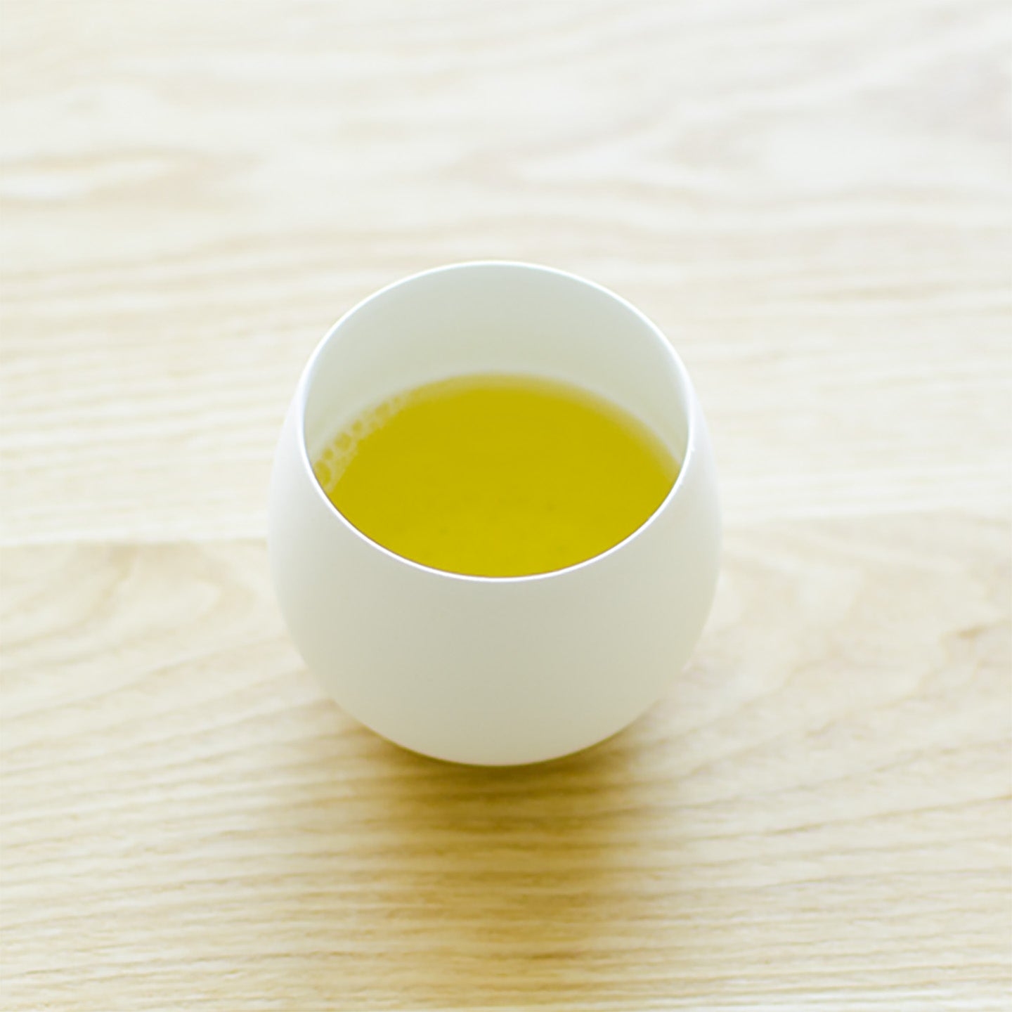 ワイングラスのようにすぼまった卵型の形でお茶の香りを楽しむことができます。コロンと丸い形状が可愛らしく、マットな白い釉薬が手に馴染みます。