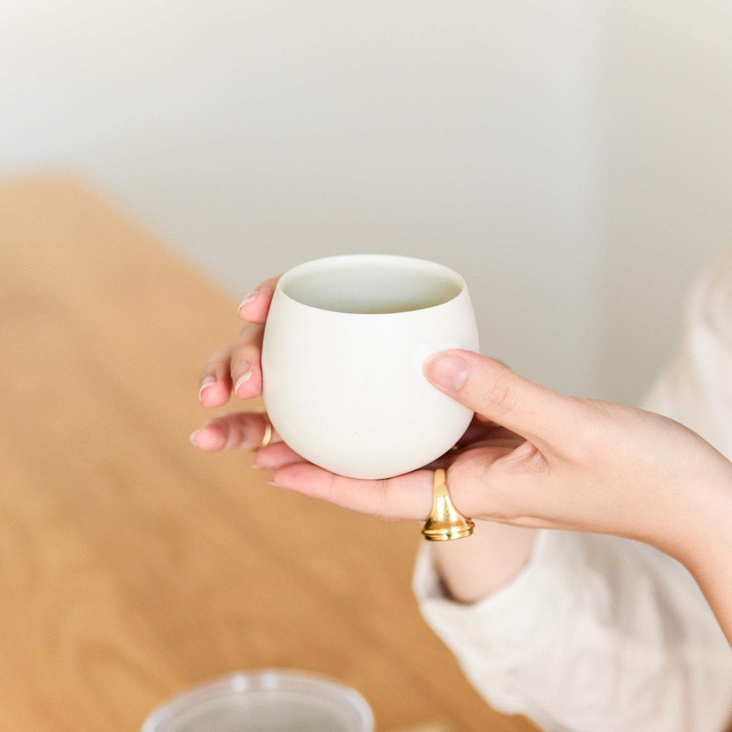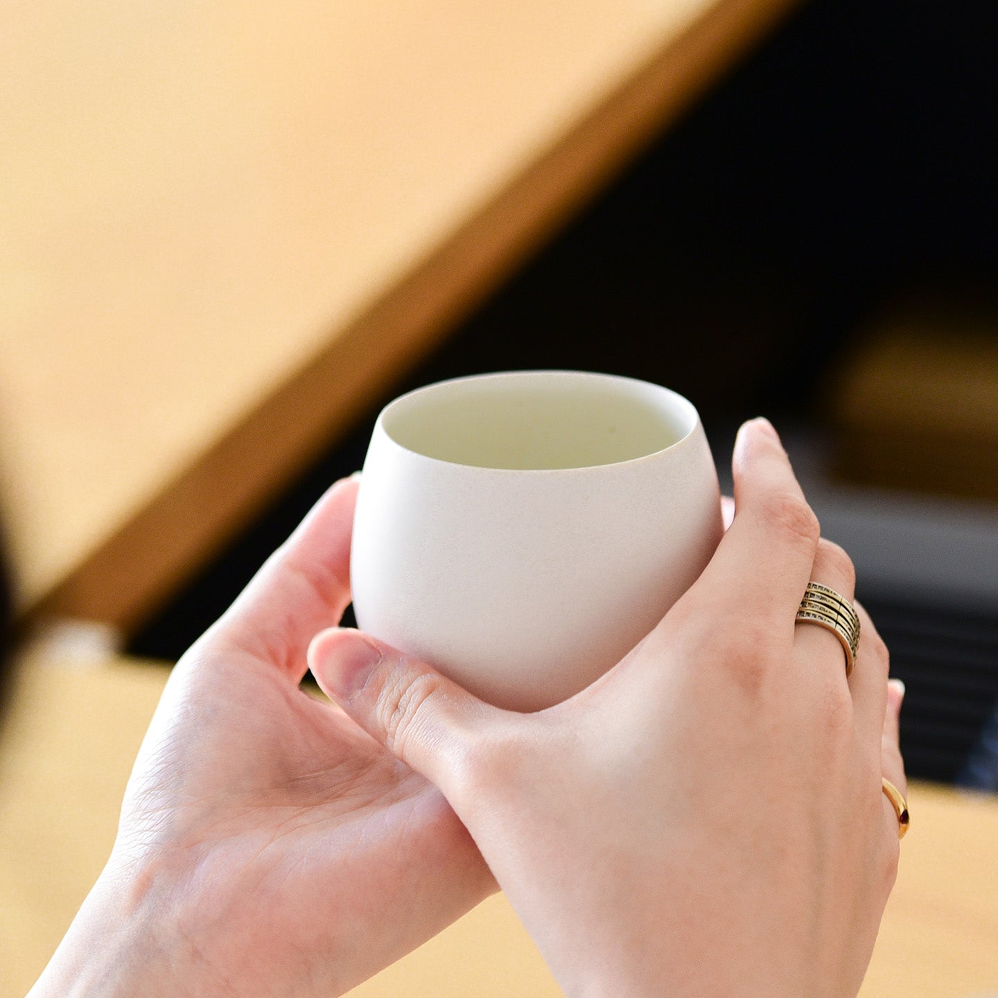 シンプルでモダンな佇まいがとても素敵です。口に当てたときの感触がよく、飲みやすい器だと感じました。お茶以外にもハーブティーを入れると香りが立って、より美味しく感じます。