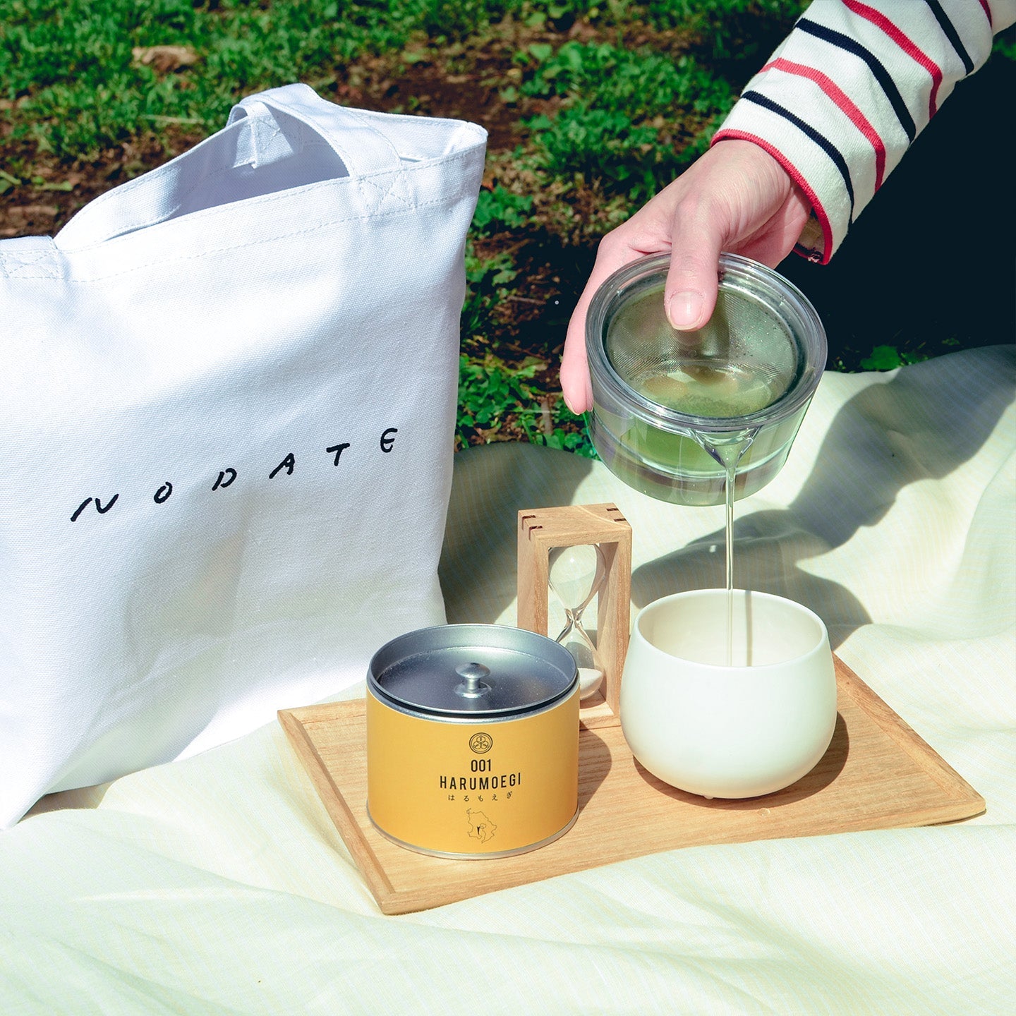 柔らかい書体で描かれた「nodate(野点)」の文字。これを携えて野に出て茶を点てよう。