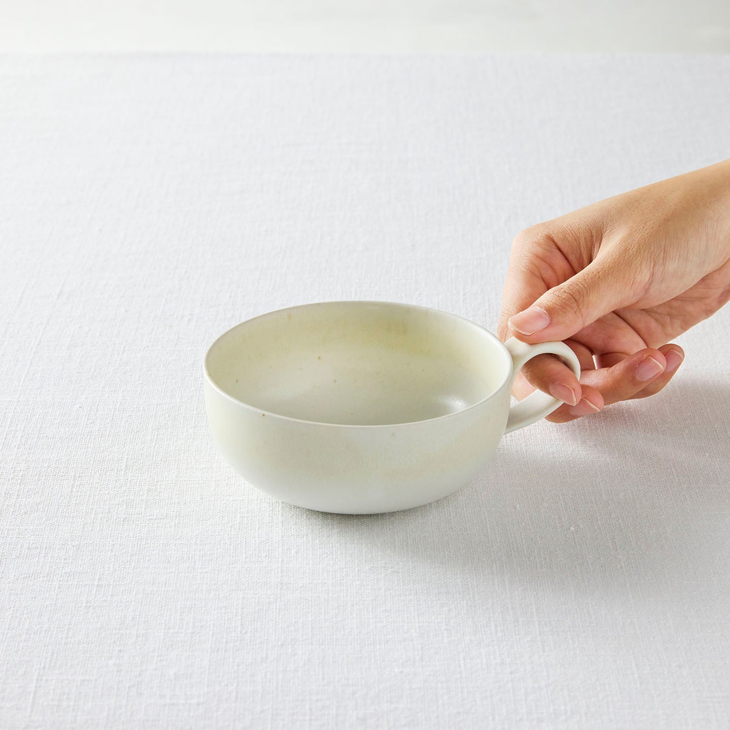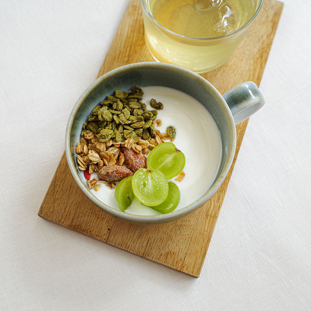 また、スープカップや朝食のグラノーラにもぴったり。取っ手がついているけれど、だからと言って飲みものだけと使い方を限定してしまうのはもったいない。