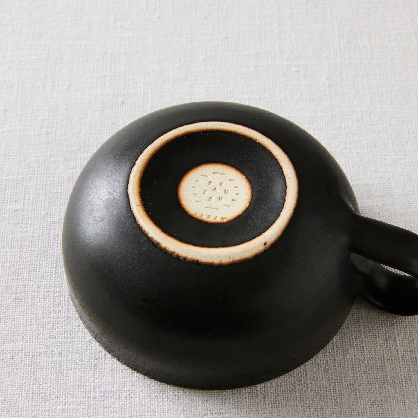 ベースの黒と口径部分の黒で2つの黒があるように見えますが、これは「窯変」という現象によるもの。窯の中の温度の変化によって、まるで2色のグラデーションのように見えます。