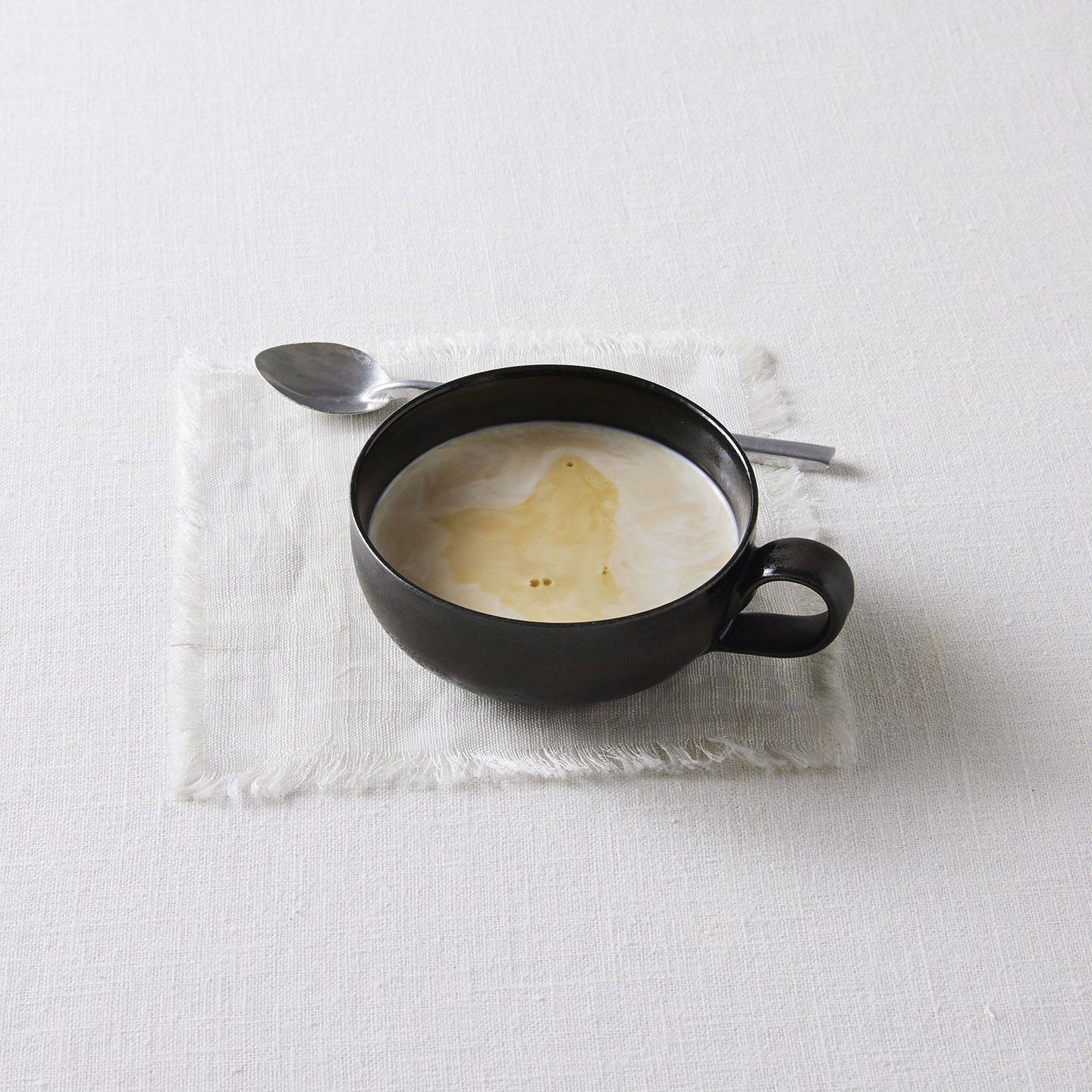 「Youhen Black」は正直言うと、色も味わいのうちの煎茶はあまりおすすめではありません。ですが、コーヒーを注ぐと深い色が更に奥行きを増してくれて、ミルクを注ぐと、途端にミニマルなかわいさが生まれるんです。