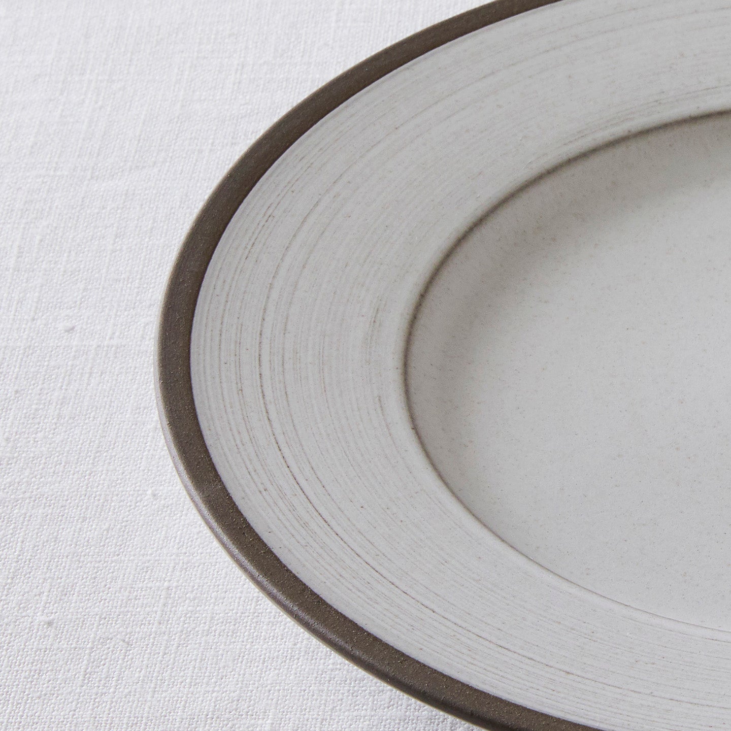 近づいて見てみると分かる、釉薬のテクスチャー。リムの部分は刷毛の道筋が残っていて、それによって器の表情が生まれています。