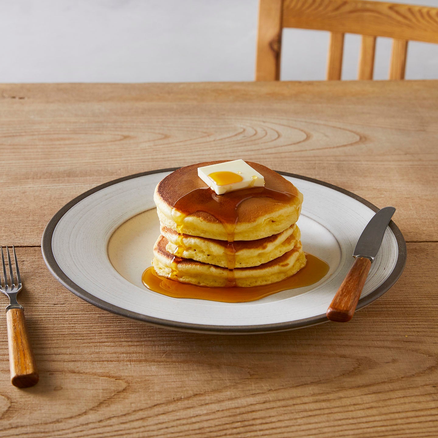 夢のような、ホットケーキ3段重ね。休みの日、早起きした日も、お昼まで寝ちゃった…という罪悪感のある日でも、ホットケーキを焼くぞ!となると、一気に特別なお休みの日になる気がします。