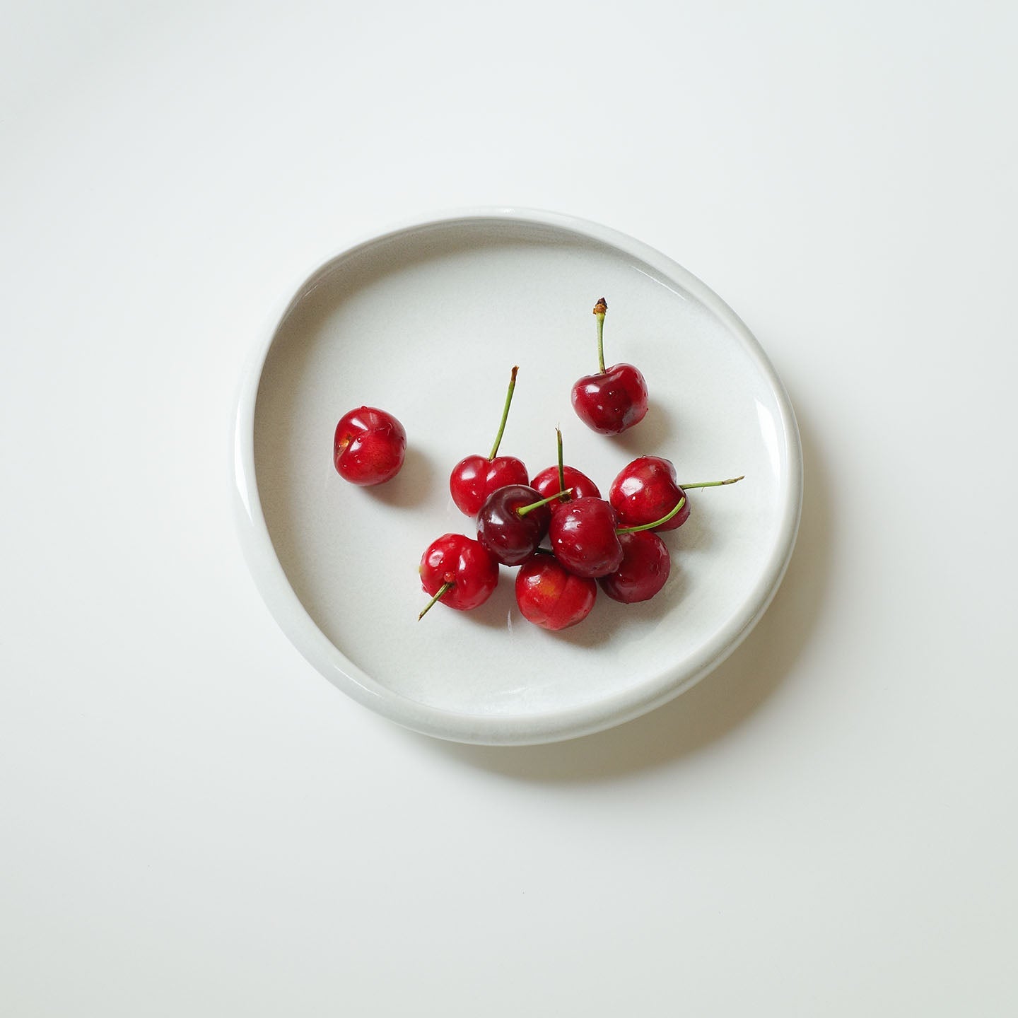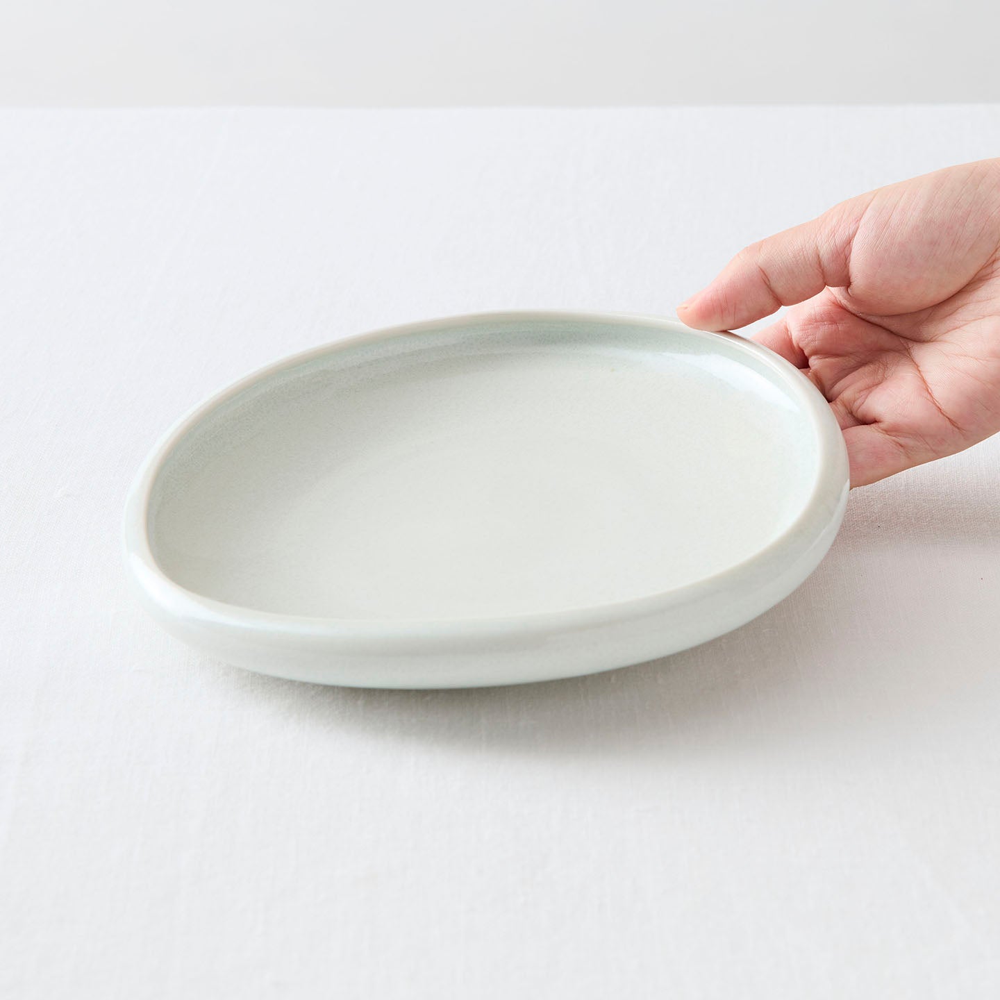 リムの深い部分を正面にすると柔らかく、開いている部分を正面にするとキリッとした印象に。 どこを正面にするかによって、光と影のバランスが変わって表情が違って見える「Manoプレート」。上にのせる食材や盛り付けの仕方によって様々な印象を与えてくれそうです。